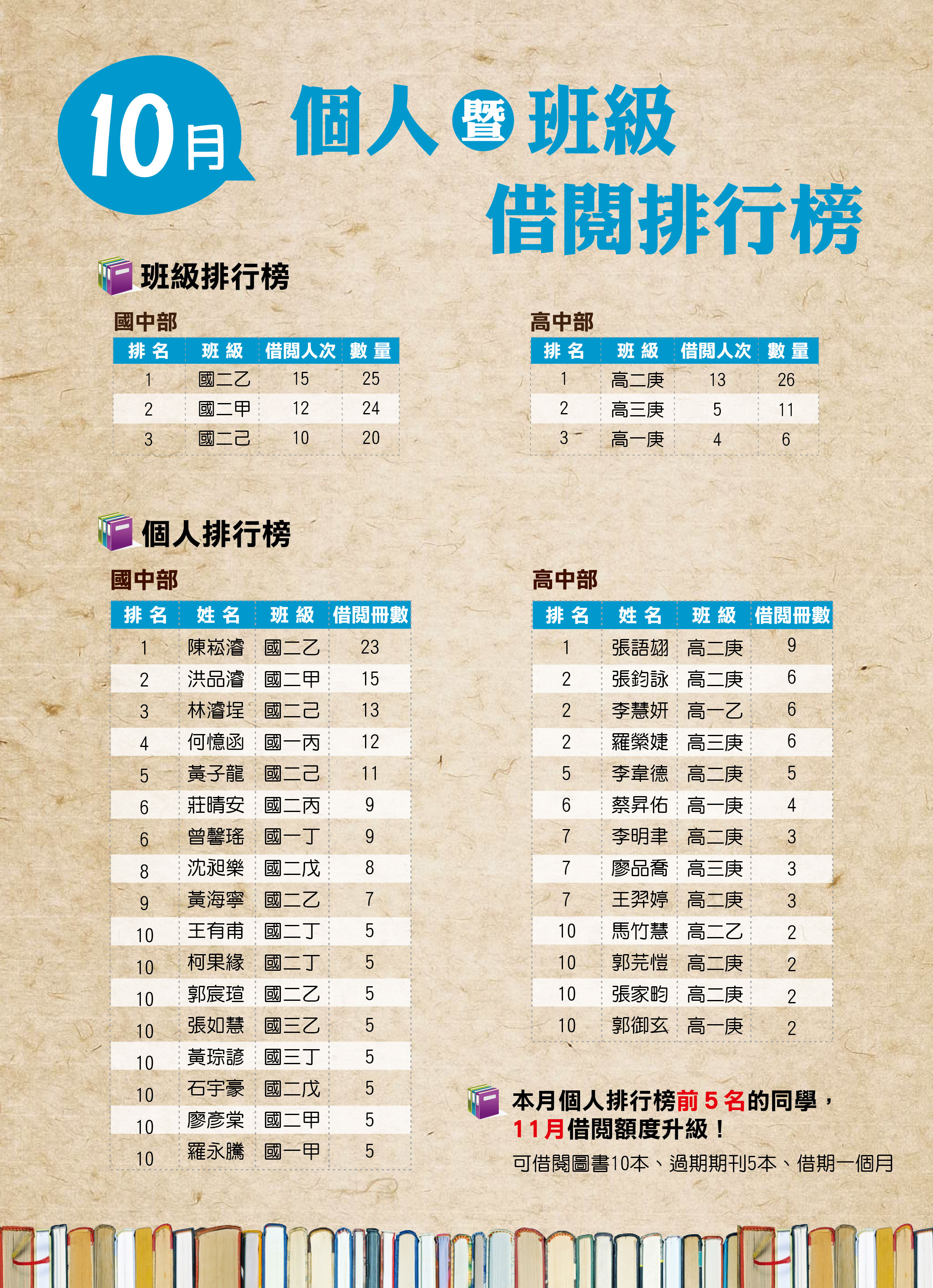 114學年度第一學期10月排行榜