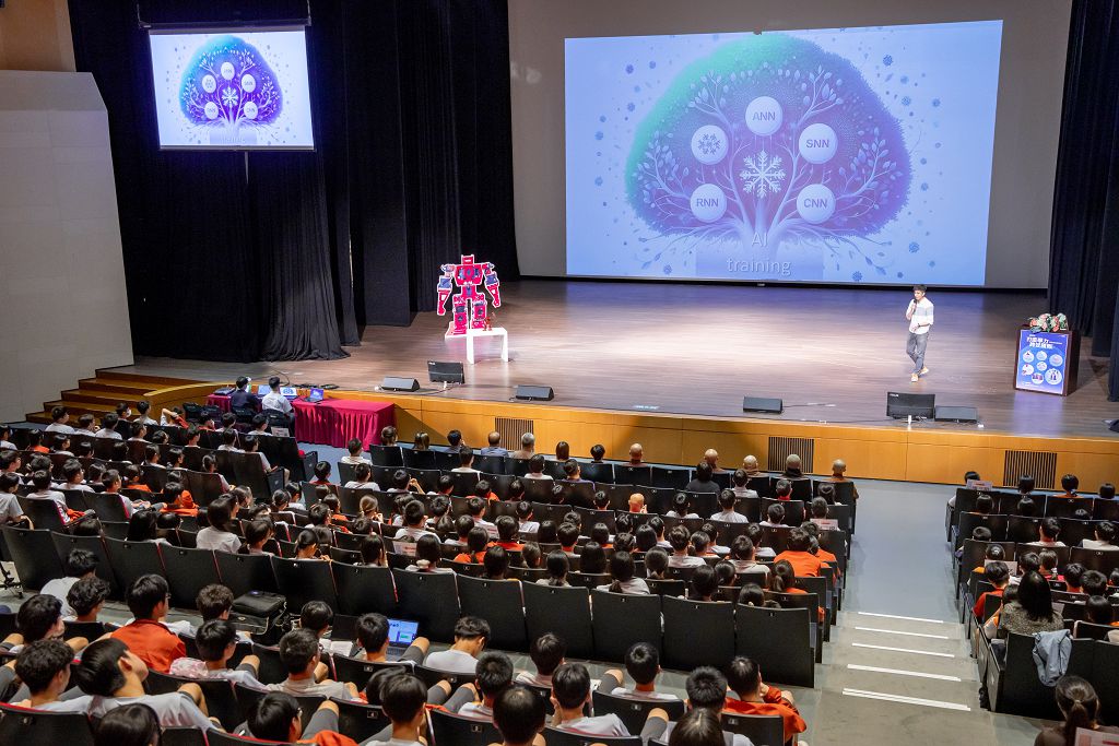 隨後,教務主任跟孩子們分享如何訓練研究能力,他將研究方法生動地比喻為偵探辦案,從懷疑到提問,從蒐證到推理,