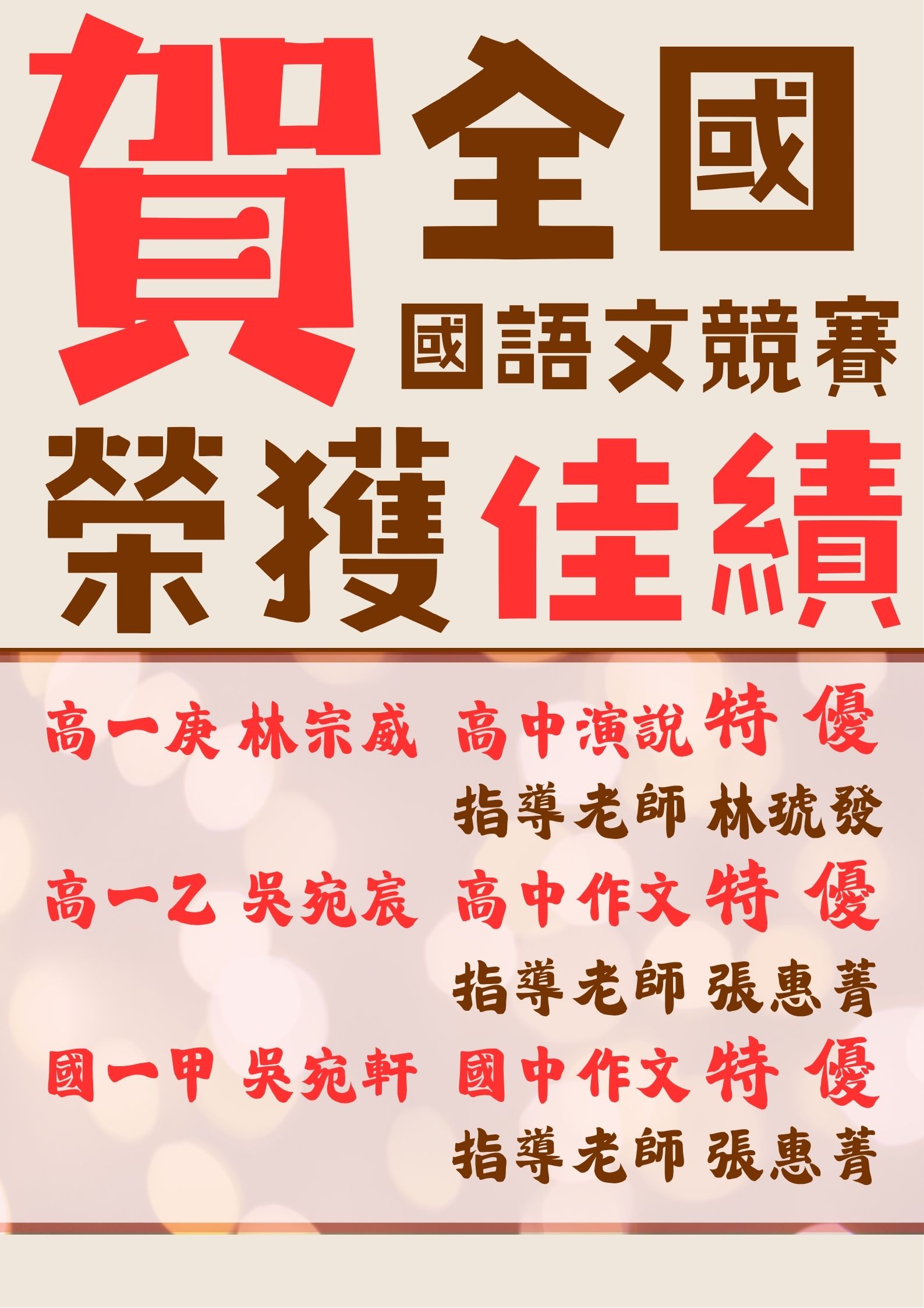 賀!本校學生參加「114年全國國語文競賽」榮獲佳績