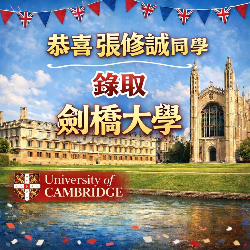 賀!本校張修誠同學錄取英國劍橋大學