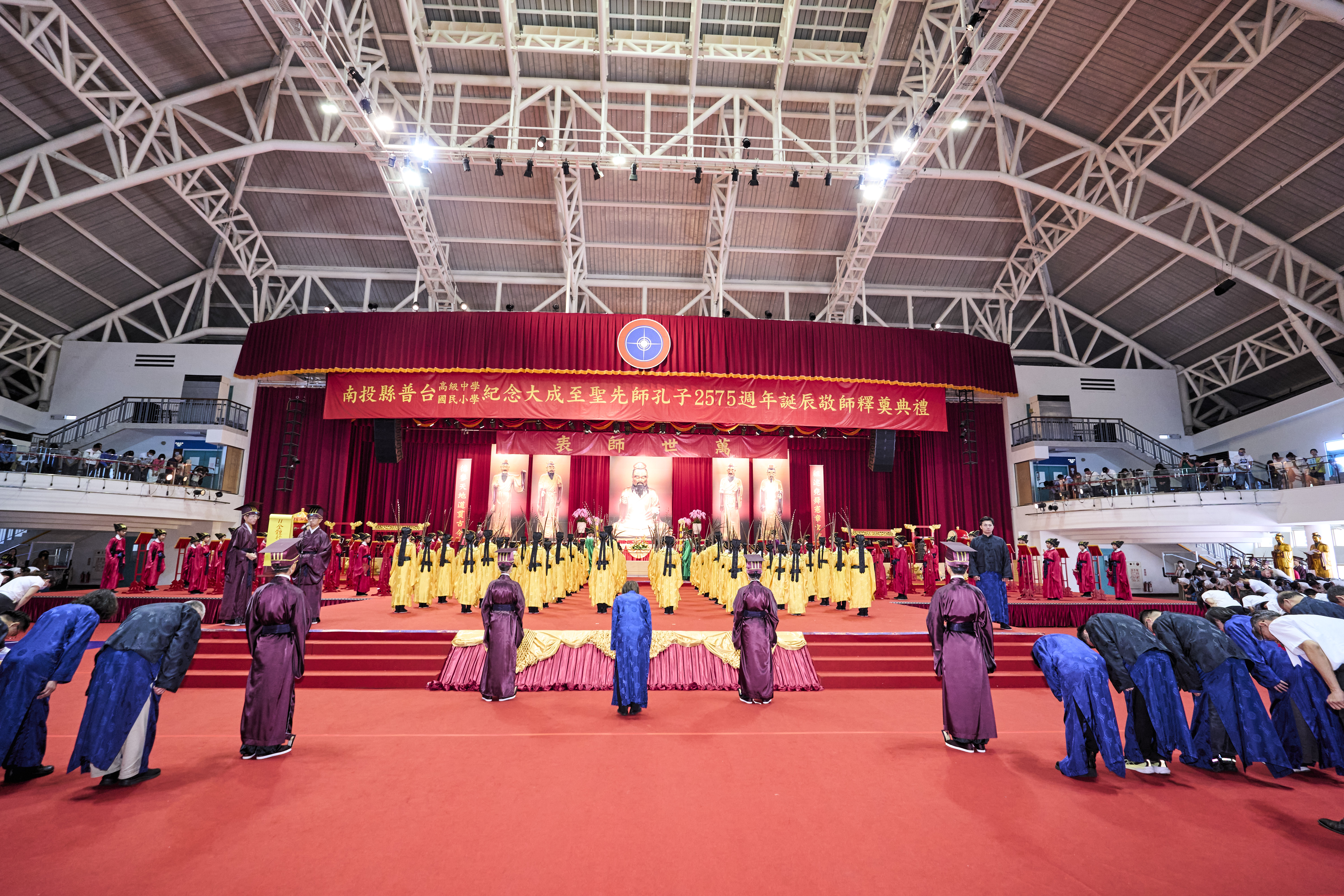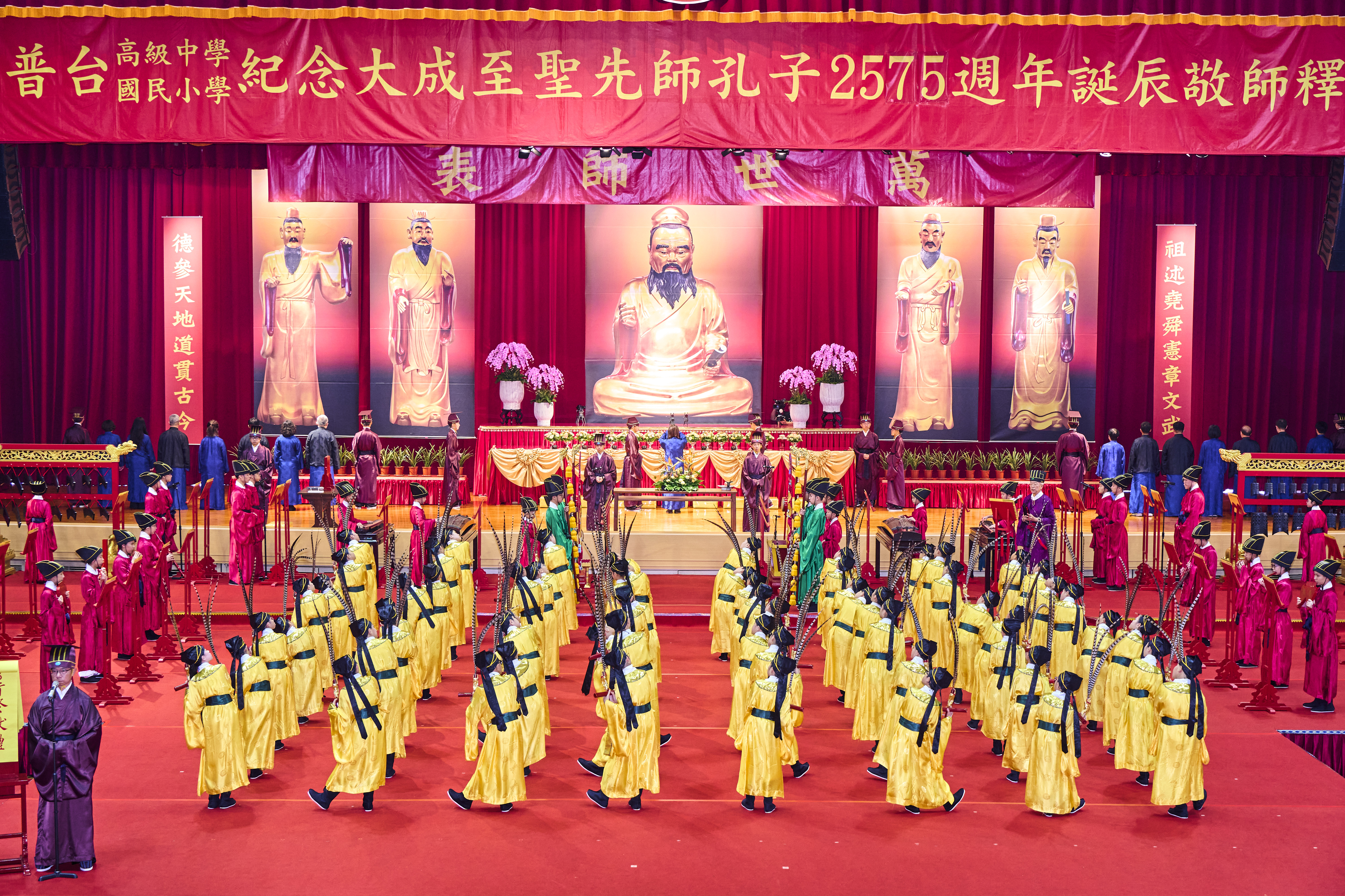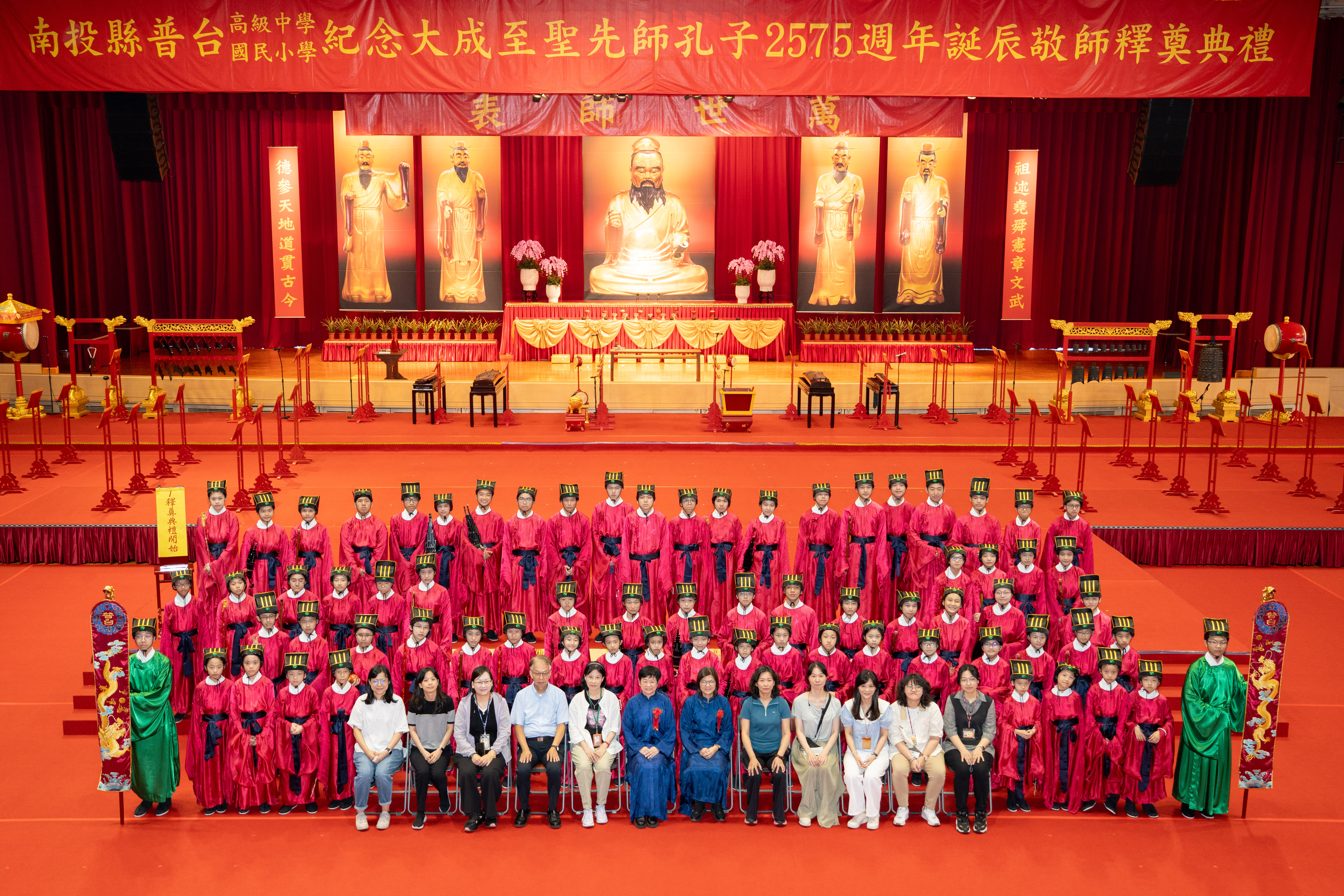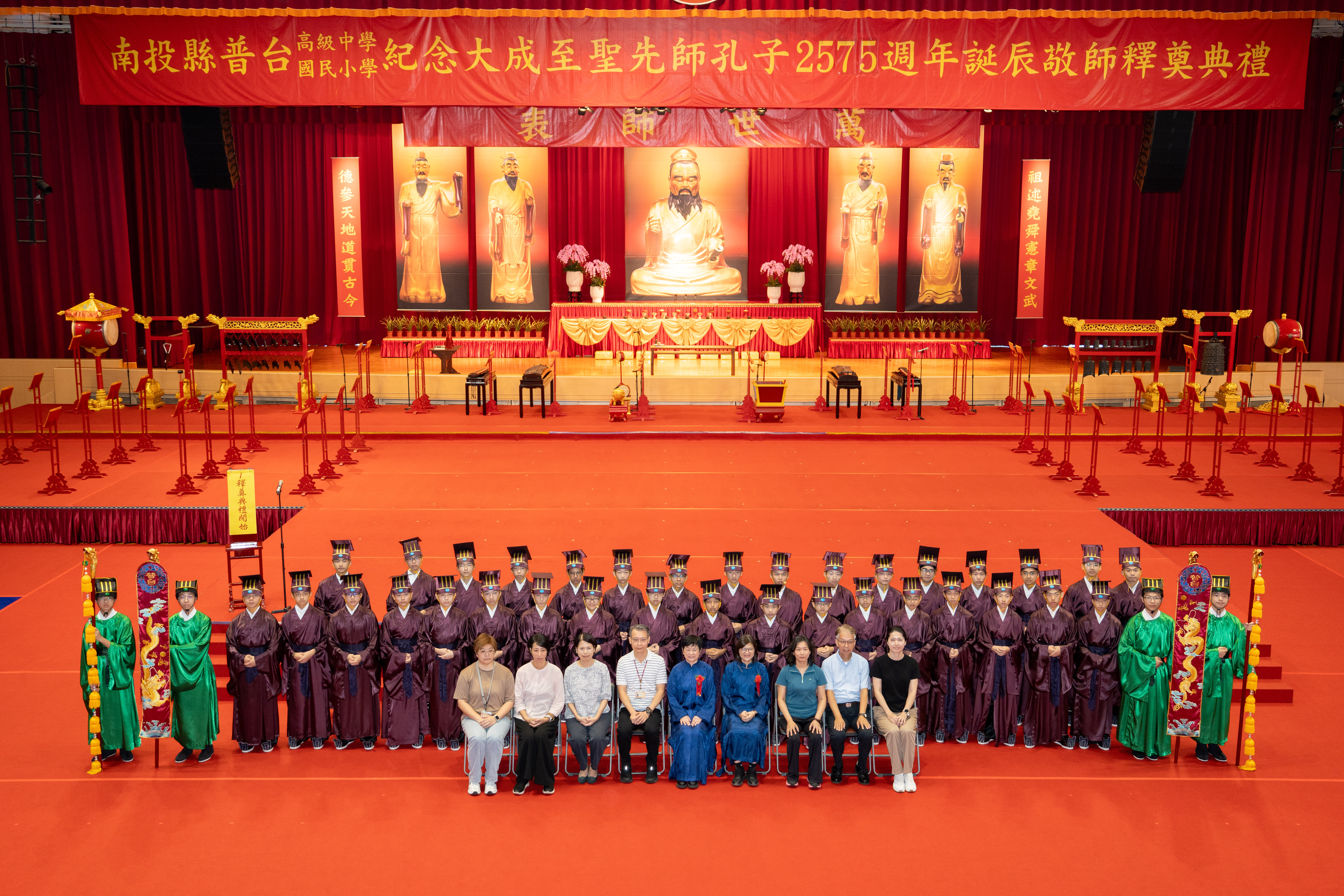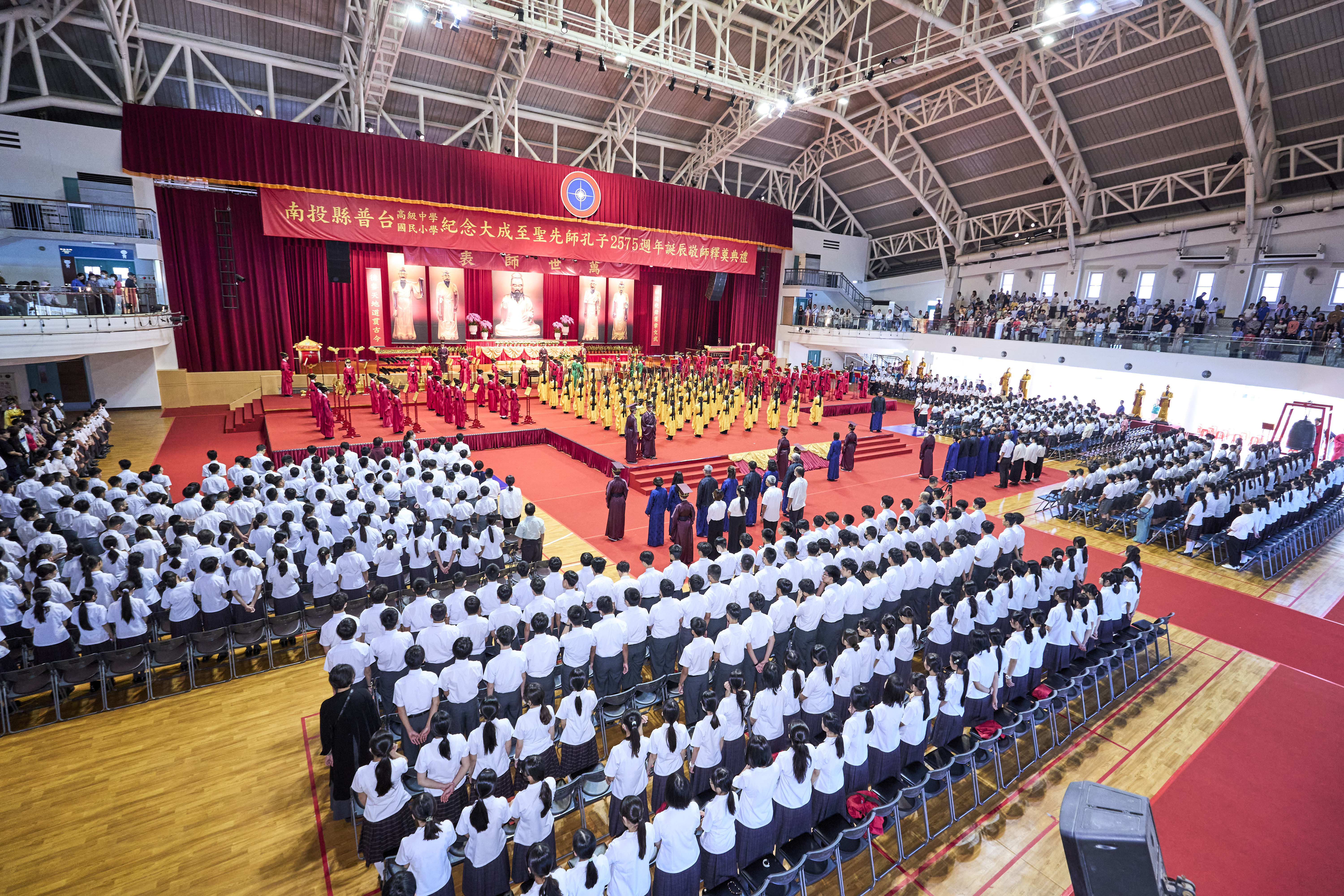 每年九月是教師專屬的敬師月,今年邁入第12屆的普台國小、高中聯合「敬師釋奠典禮」於9月27日(星期六)上午隆重舉行,莊嚴肅穆的典禮在晉鼓三嚴、鏞鐘三叩中宏開序幕,整場典儀依循古禮,以雅樂、佾舞及三獻之儀,恭祝至聖先師孔子2575年誕辰,並藉此獻上對所有師長最深的敬意與感謝。