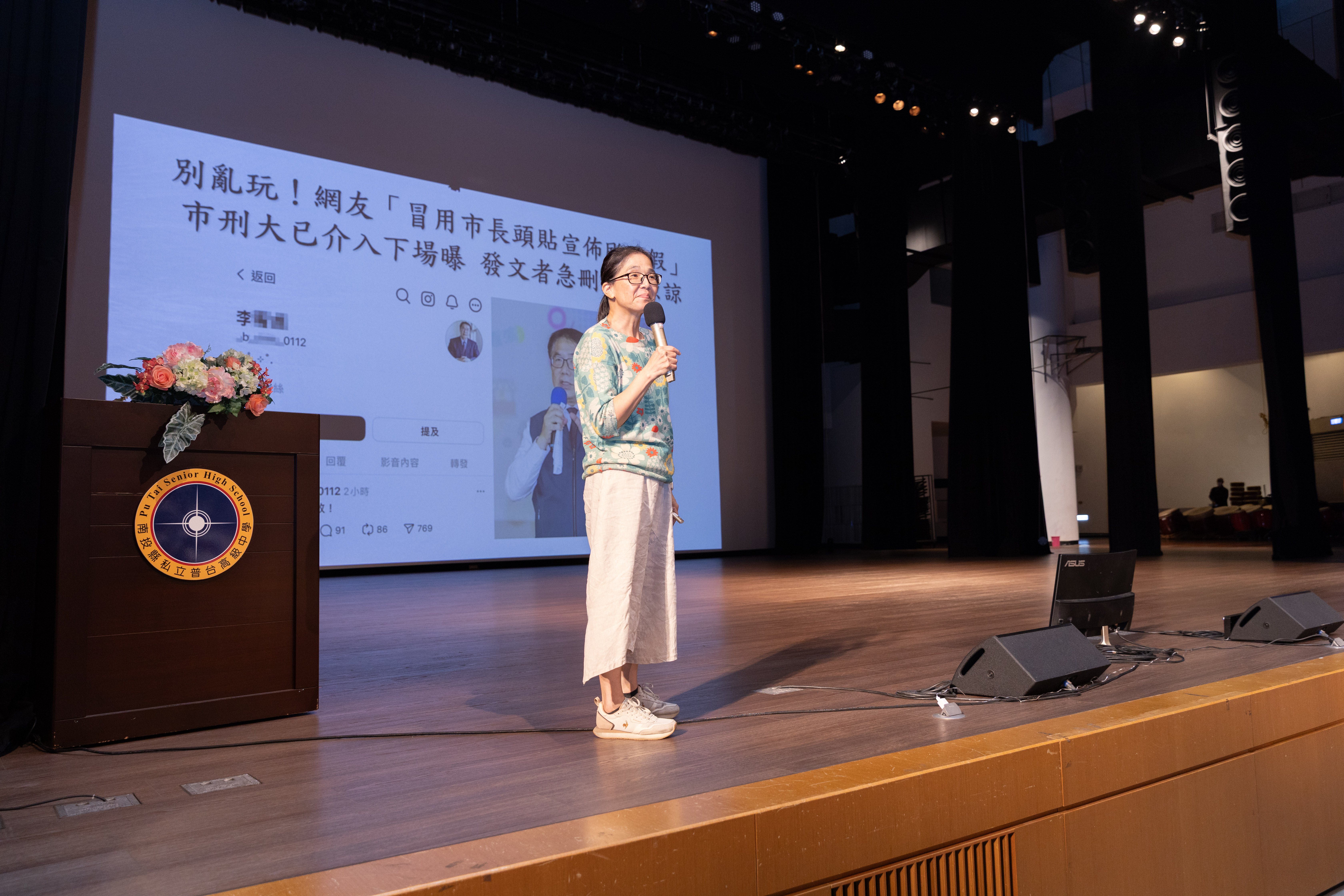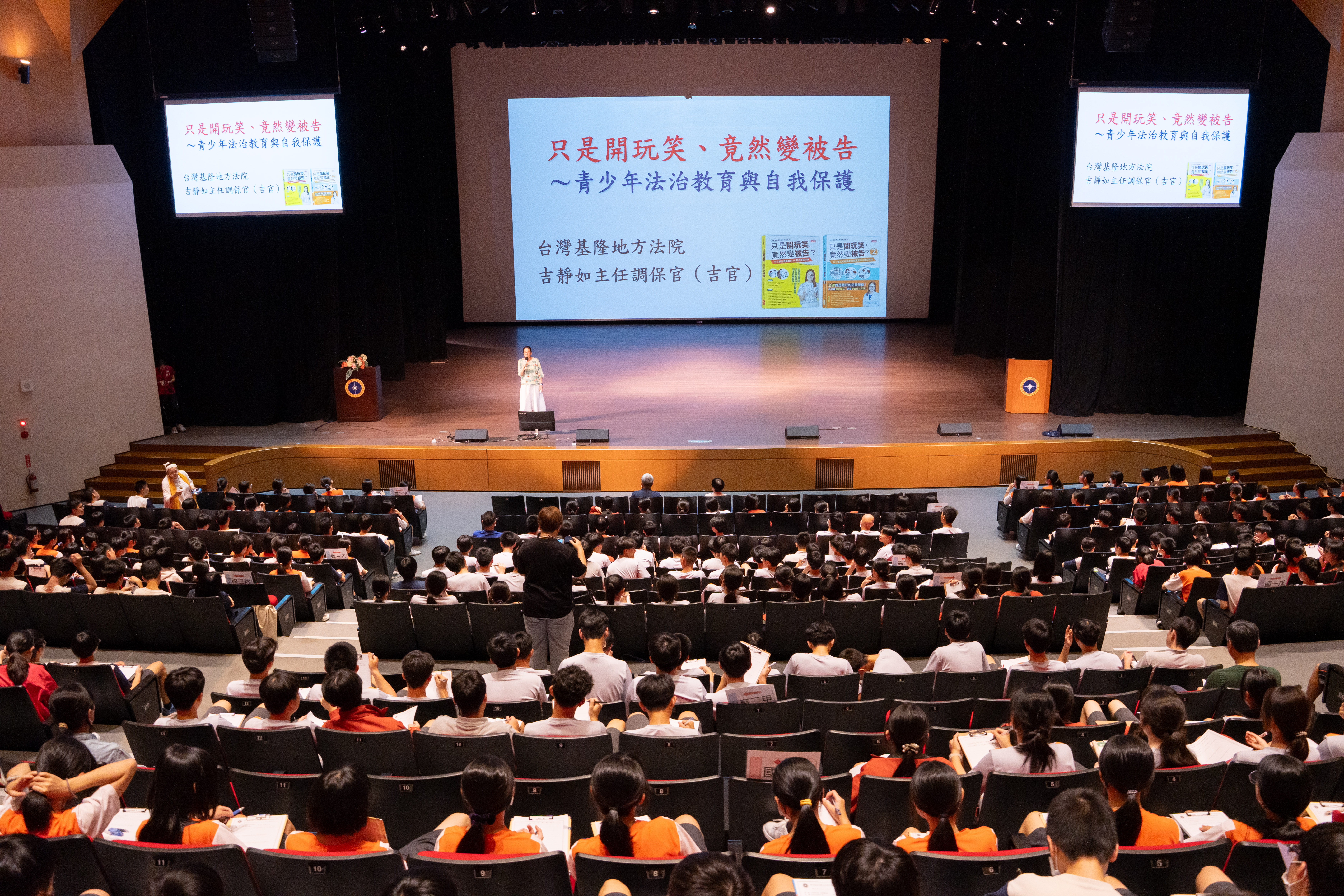 為加強同學們的法治素養,114年9月27日(星期六)下午的通識講座,邀請到台灣基隆地方法院吉靜茹主任調查保護官蒞校分享,主題是「只是開玩笑,竟然變被告—青少年法治教育與自我保護」。
