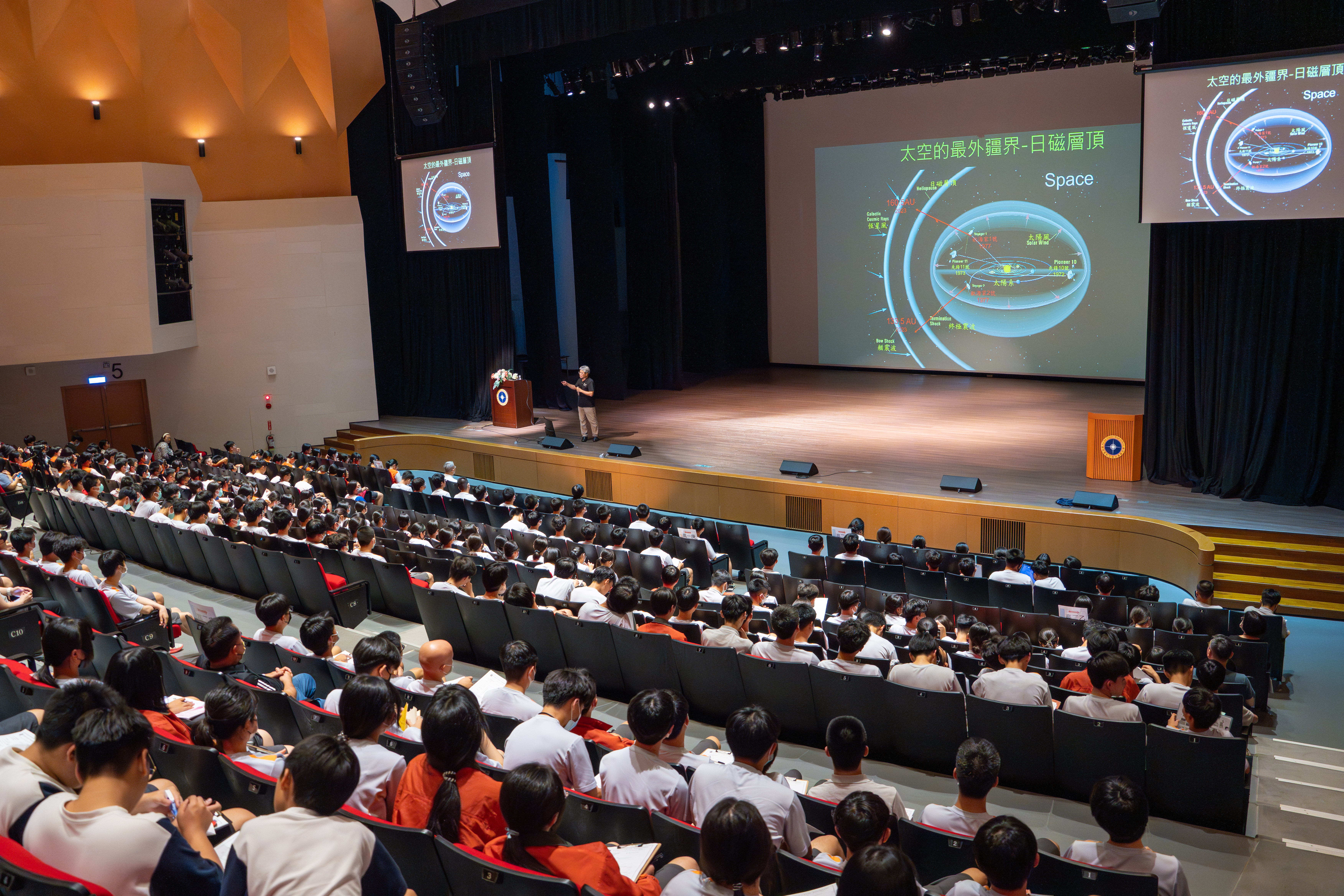 講座一開始,劉教授先從「宇宙」、「天文」、「太空」、「大氣」四個意義不同的名詞作為起點,帶領學子穿越大氣層,一層層揭開宇宙太空的神秘面紗。講到太空,不能不提太空中的主要物質形式—電漿態。在劉教授生動清晰的解說下,孩子們認識到極光、大氣暉光、閃電即是電漿態在自然界所展現的華麗舞姿,而日光燈、霓虹燈、電漿電視則是電漿態在人類生活中的技術應用。介紹完太空環境,劉教授轉入講座的第二個主題:衛星科技。遠在地球之外的一顆顆人造衛星,是當今全球太空競賽的主角之一,更與我們的日常生活息息相關,諸如通訊傳播、導航定位、氣象與資源觀測……等,它們都扮演舉足輕重的角色。於此,他特別介紹台灣福衛系列衛星過去的執行成果、現行進展及未來計畫,讓大家看到台灣在太空科技的不凡成就與巨大潛力。