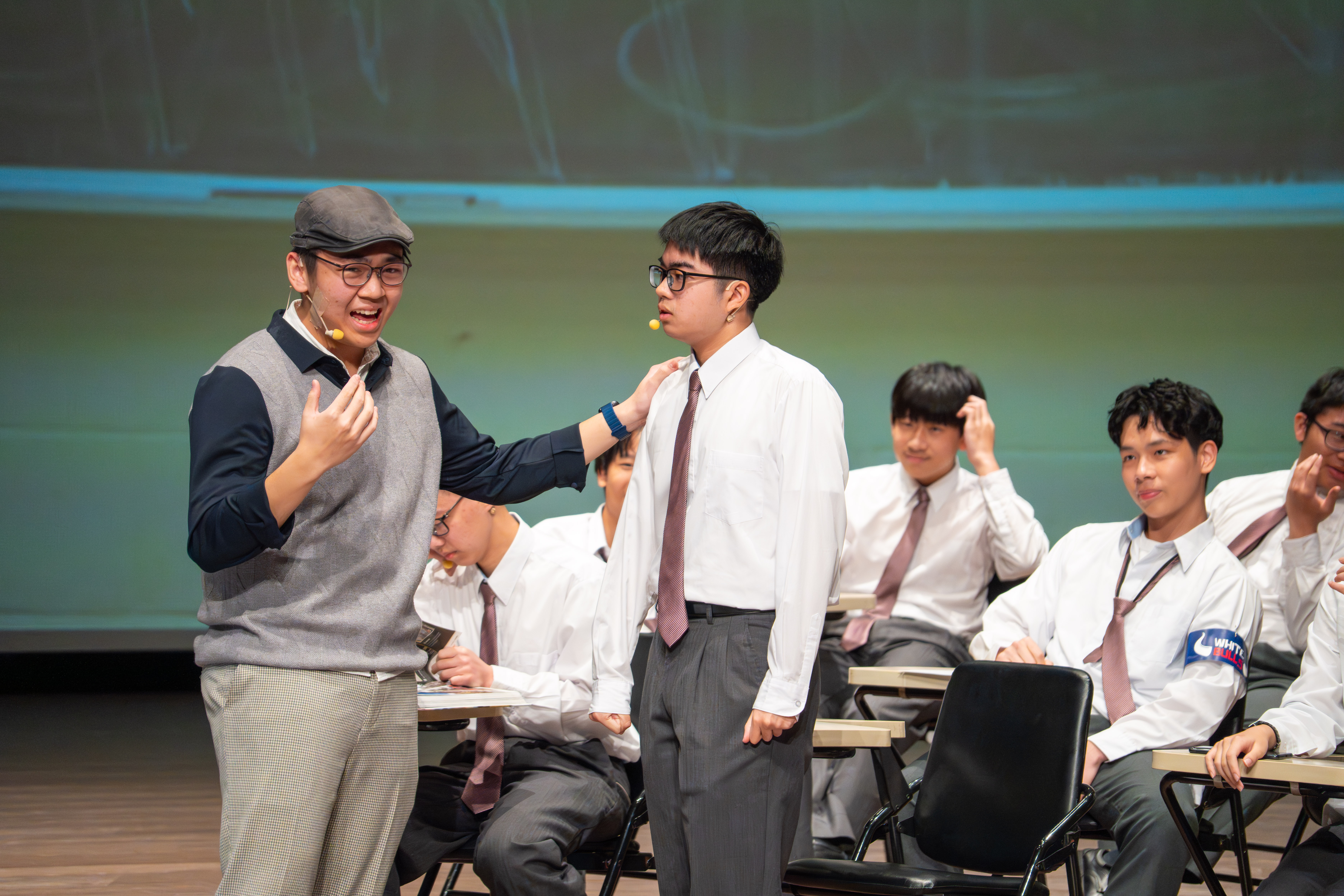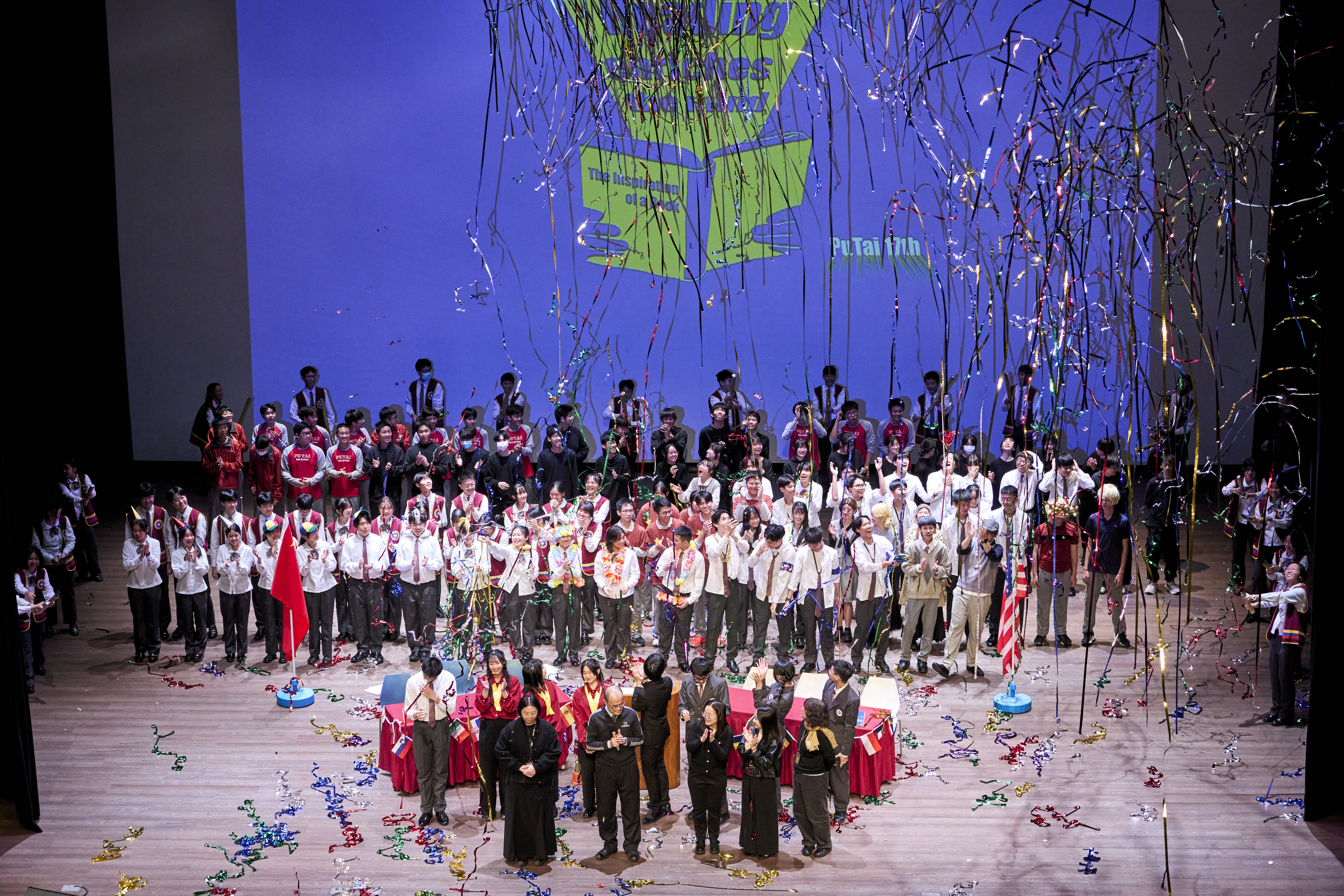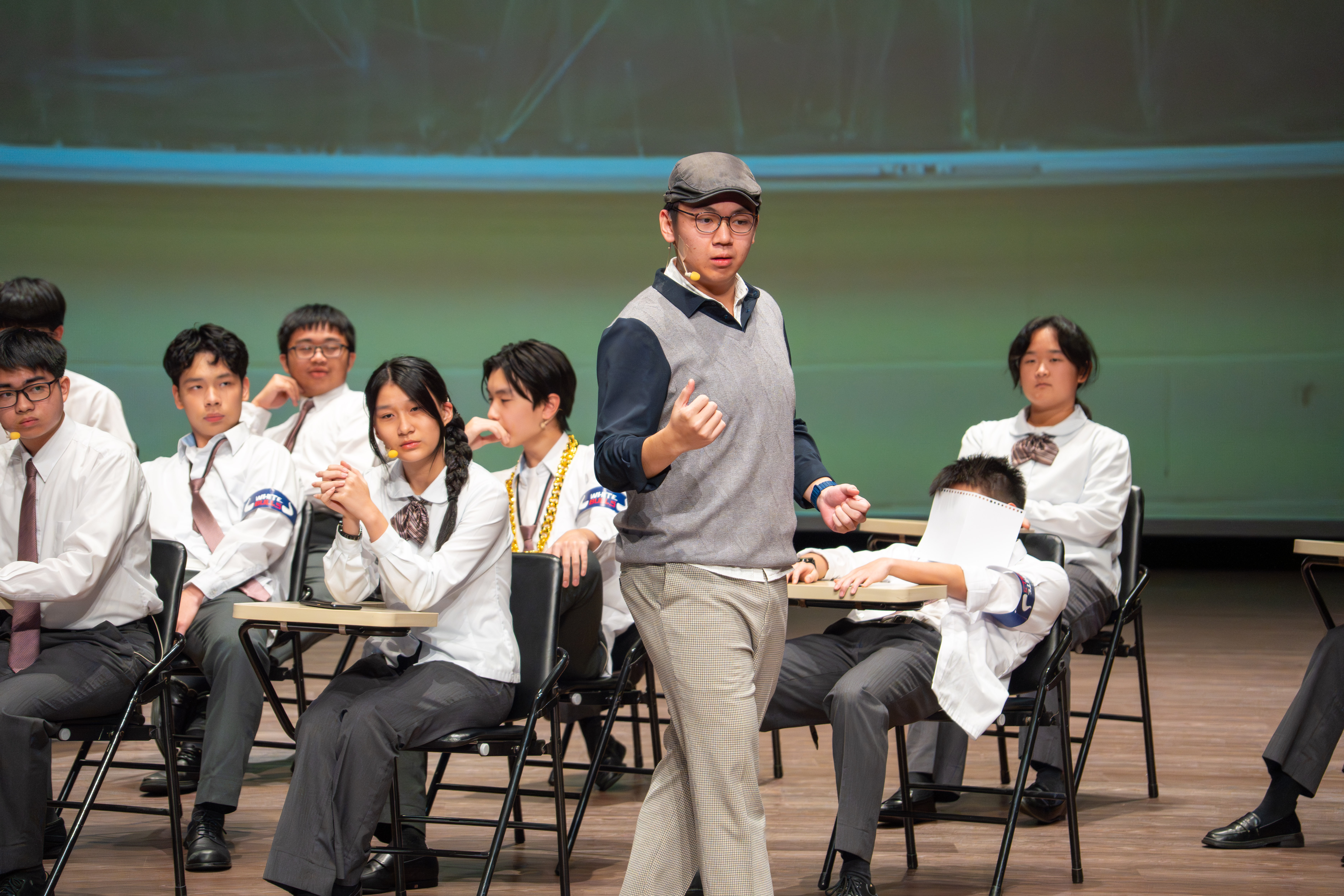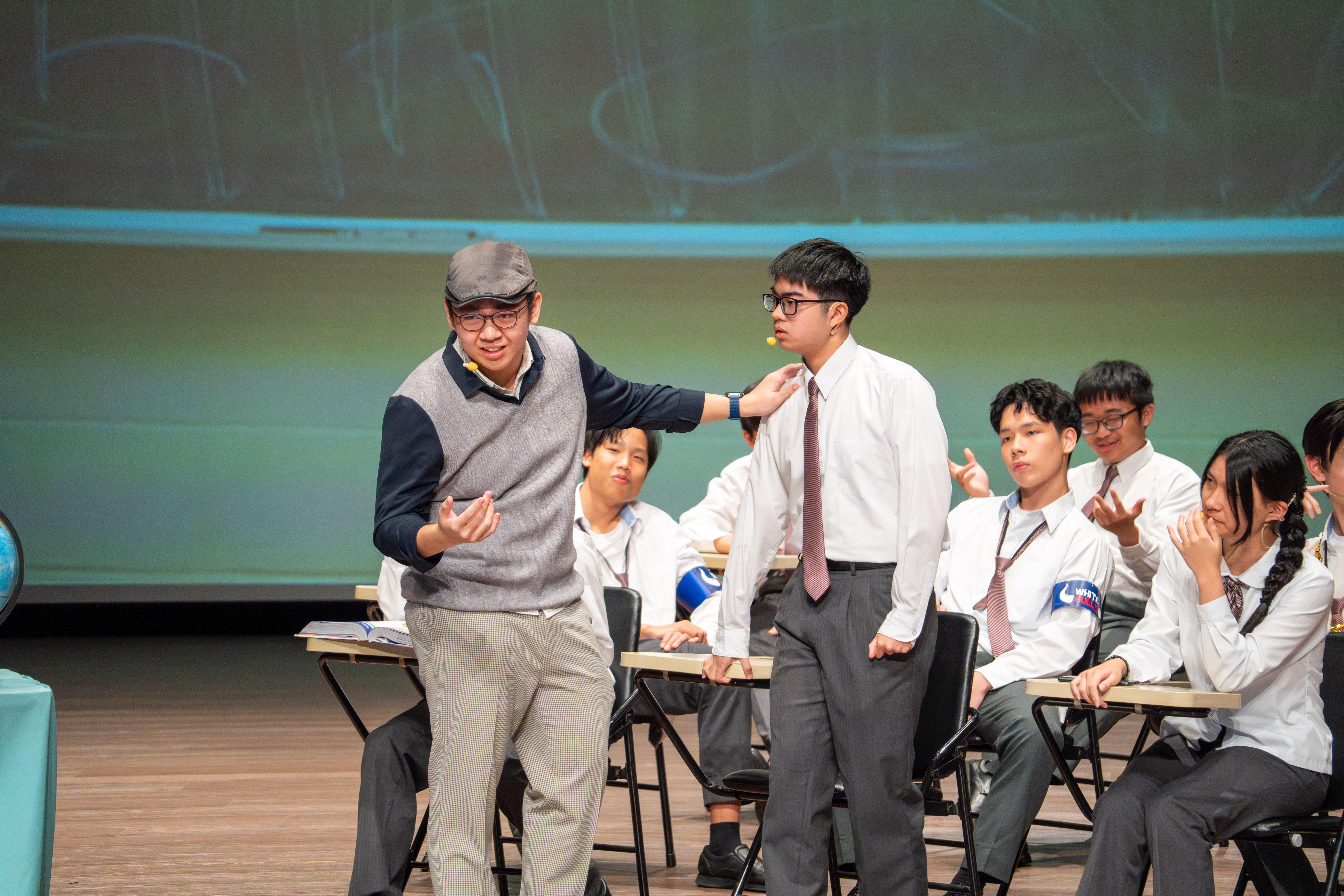 寒輔的壓軸亮點──高一英語話劇公演《高校西遊》(A Journey to the West) 於1月29日(星期四)晚間在藝術大廳閃亮登場!這齣長達40分鐘的原創英文舞台劇以經典名著《西遊記》為創作靈感,描述一位華裔青年赴美留學的尋夢過程,劇中巧妙融合了校園霸凌、種族偏見、移民困境與真理追求等生命議題,透過不同角色人物之間的精采對話,傳遞出善良與正直的普世價值。不論是台上的演員或各組幕後工作人員,都在這場高一年段盛事中經歷了「from Me to We」的成年禮,慢慢懂得放下自我,配合團體,以大局為重。值得一題的是,這次公演劇碼《高校西遊》將於四月代表南投縣參加「114學年度全國學生創意戲劇比賽」全國決賽,期待這齣兼具深度與張力的英語戲劇能在群雄中脫穎而出,拔得頭籌,為校爭光!