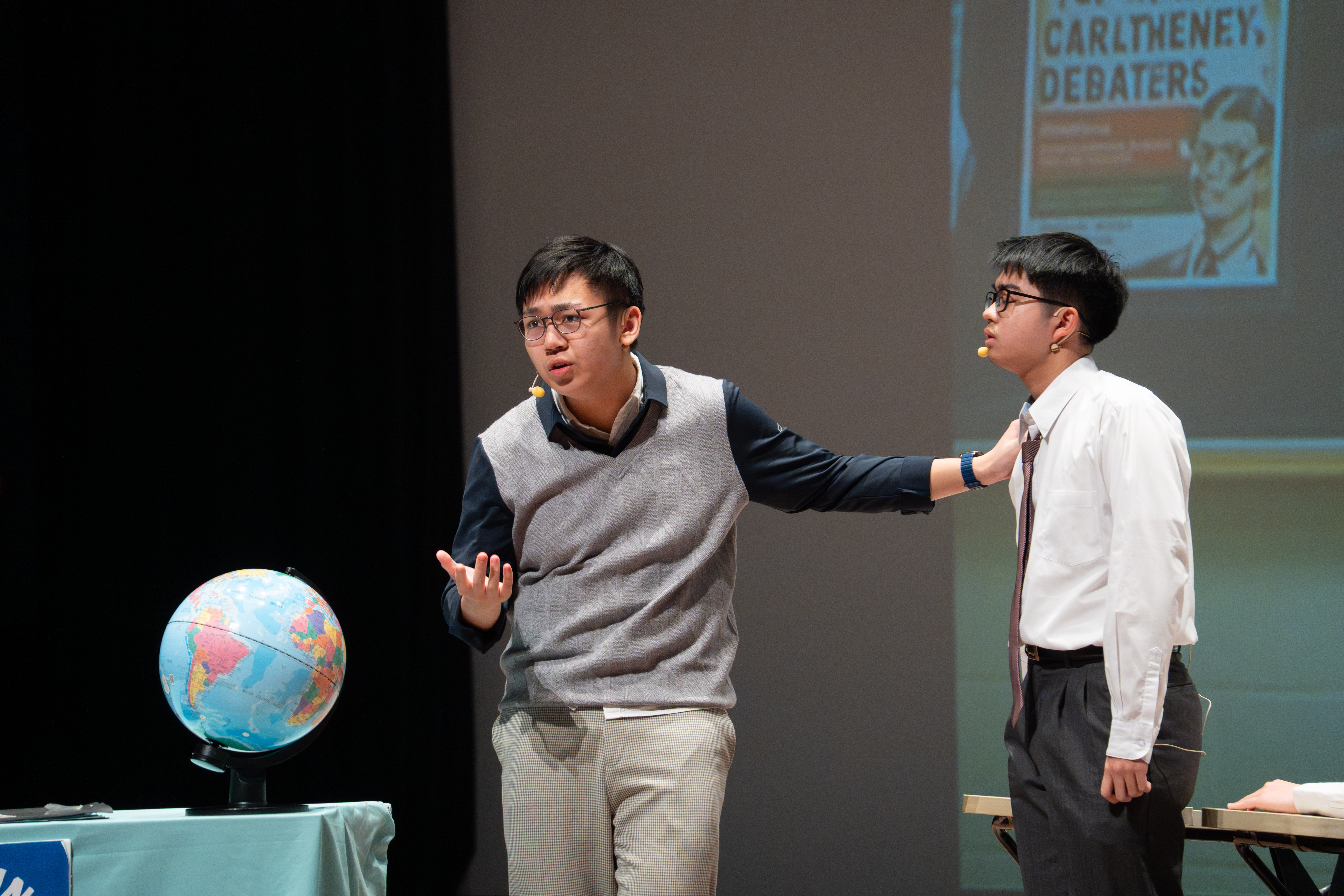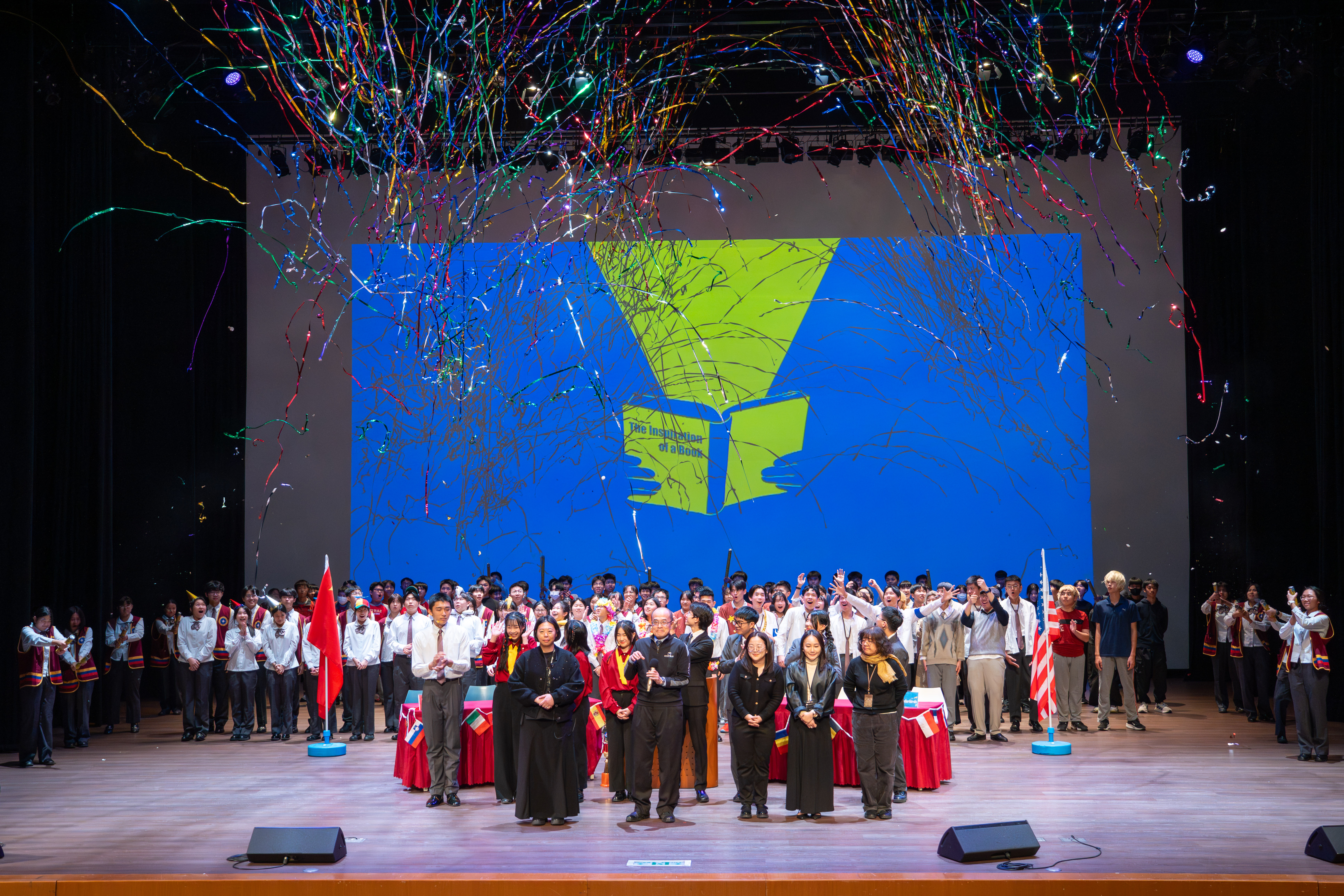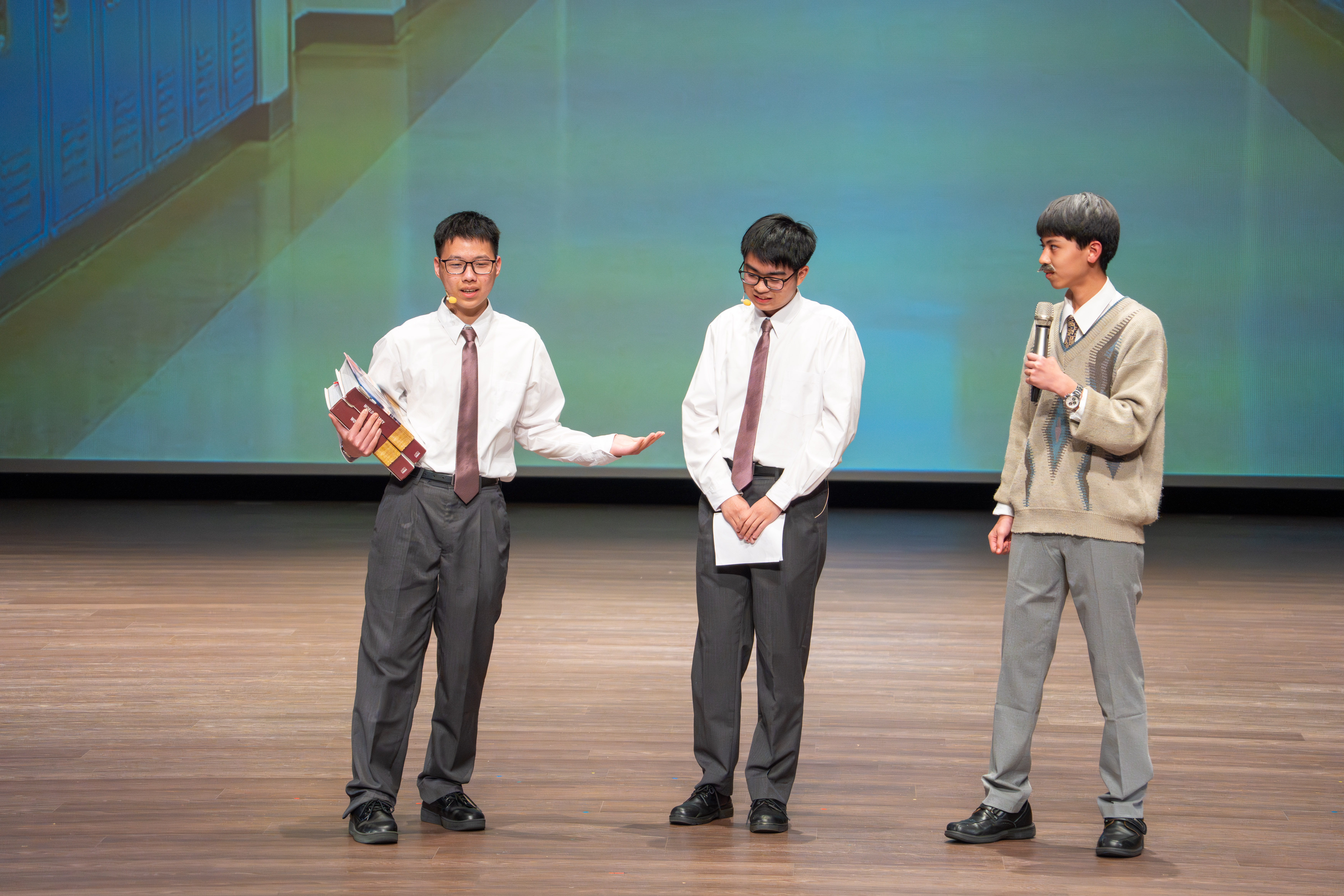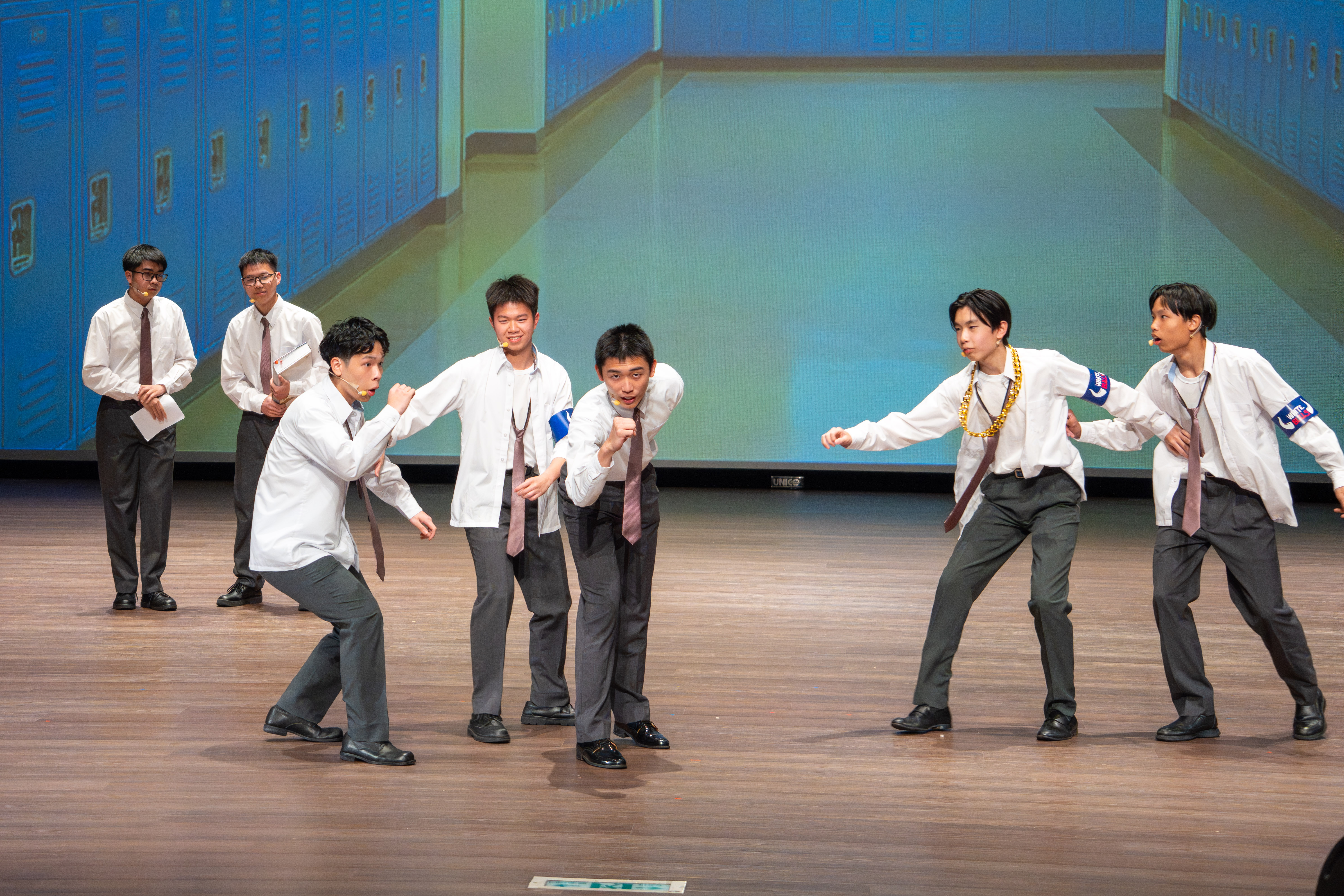 寒輔的壓軸亮點──高一英語話劇公演《高校西遊》(A Journey to the West) 於1月29日(星期四)晚間在藝術大廳閃亮登場!這齣長達40分鐘的原創英文舞台劇以經典名著《西遊記》為創作靈感,描述一位華裔青年赴美留學的尋夢過程,劇中巧妙融合了校園霸凌、種族偏見、移民困境與真理追求等生命議題,透過不同角色人物之間的精采對話,傳遞出善良與正直的普世價值。不論是台上的演員或各組幕後工作人員,都在這場高一年段盛事中經歷了「from Me to We」的成年禮,慢慢懂得放下自我,配合團體,以大局為重。值得一題的是,這次公演劇碼《高校西遊》將於四月代表南投縣參加「114學年度全國學生創意戲劇比賽」全國決賽,期待這齣兼具深度與張力的英語戲劇能在群雄中脫穎而出,拔得頭籌,為校爭光!
