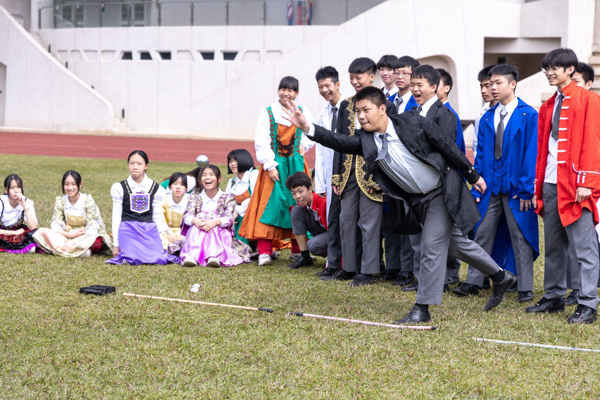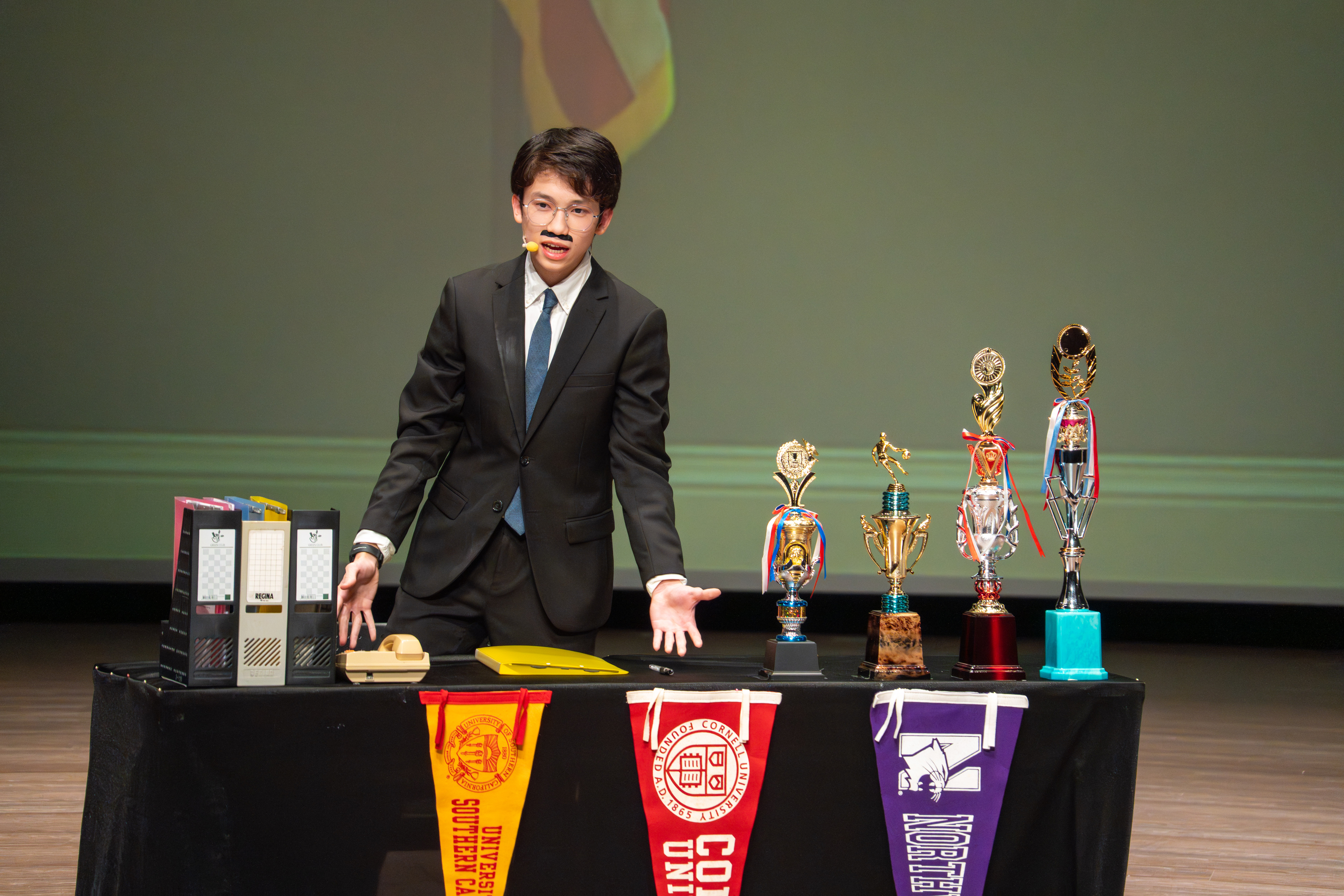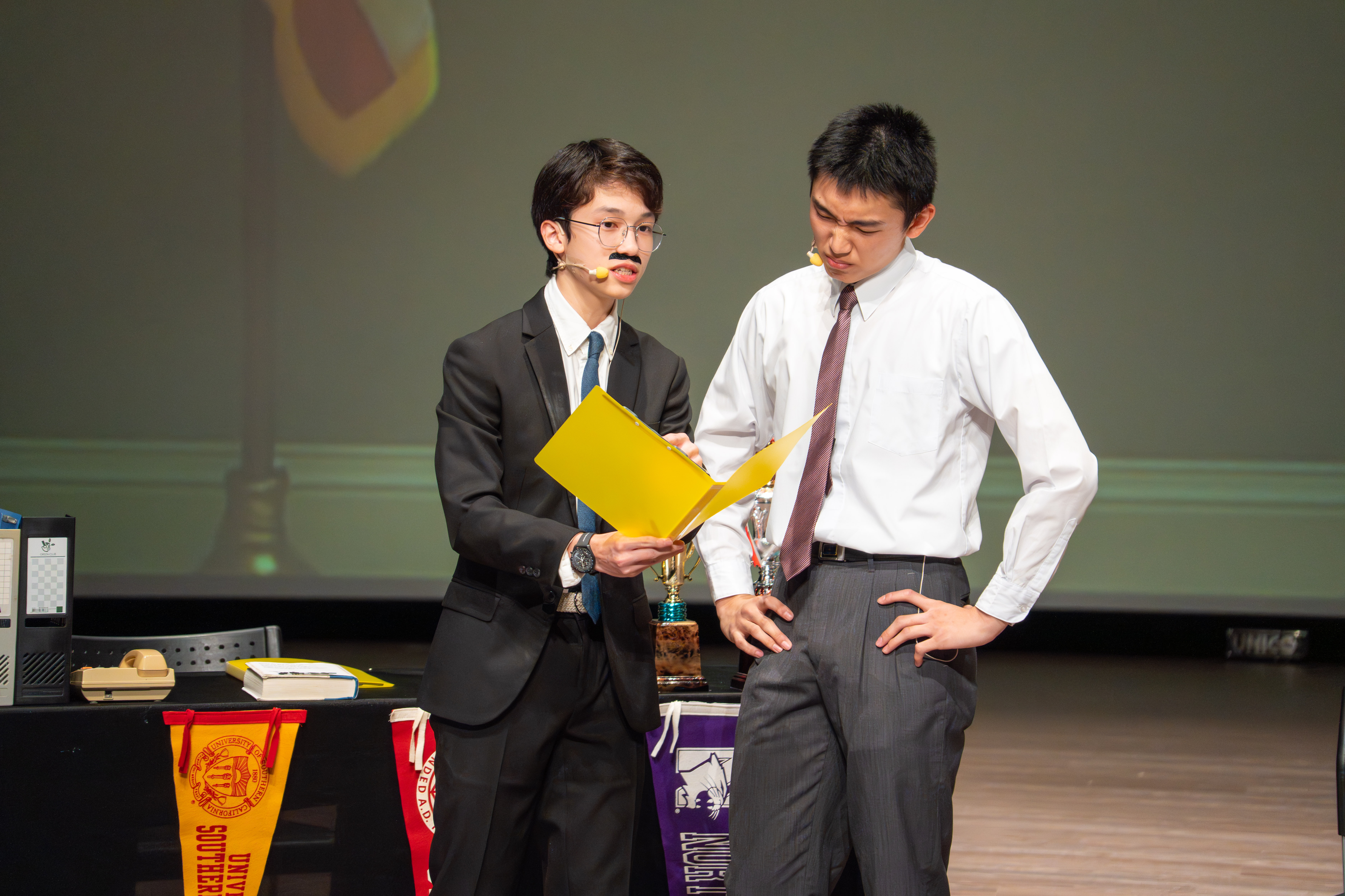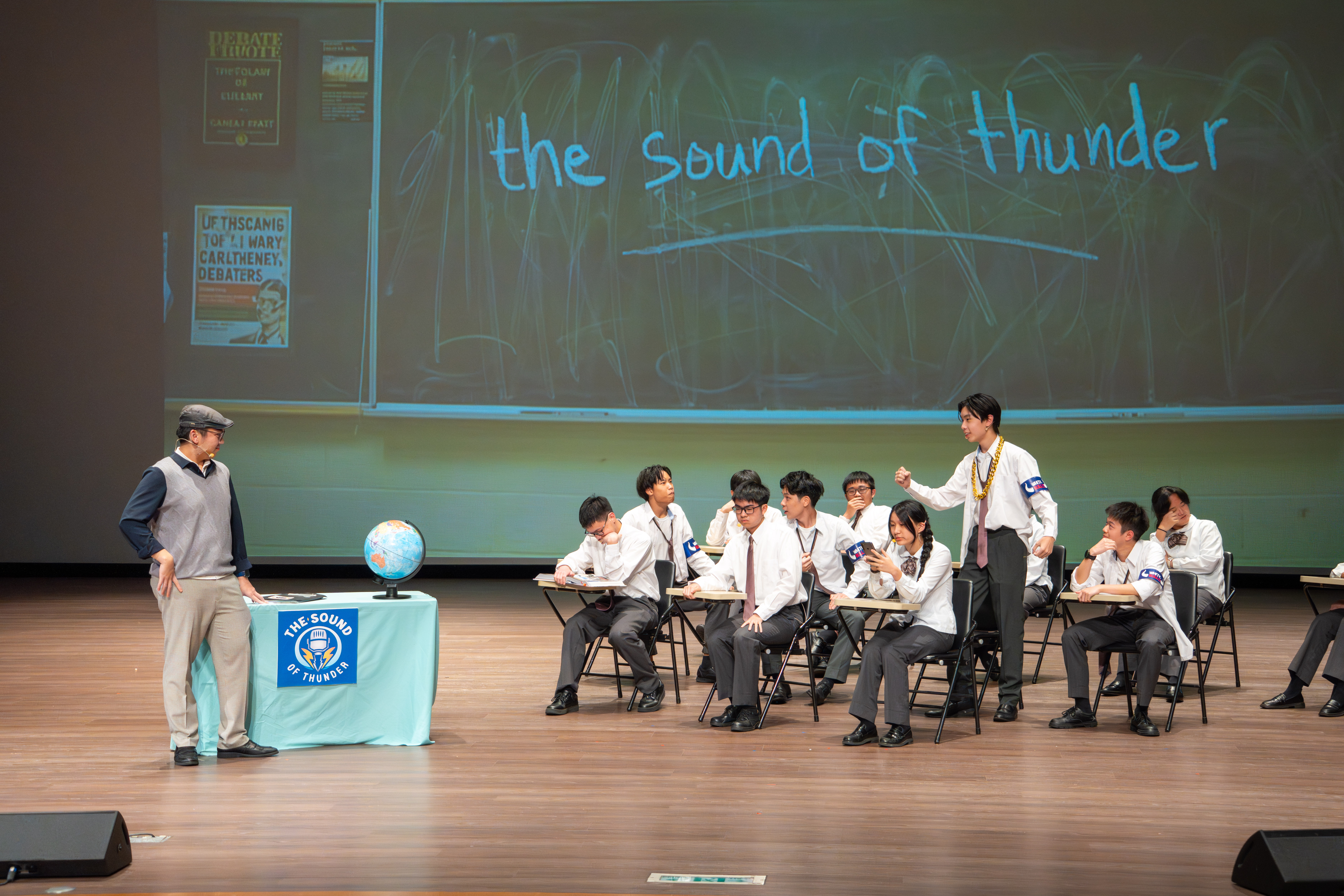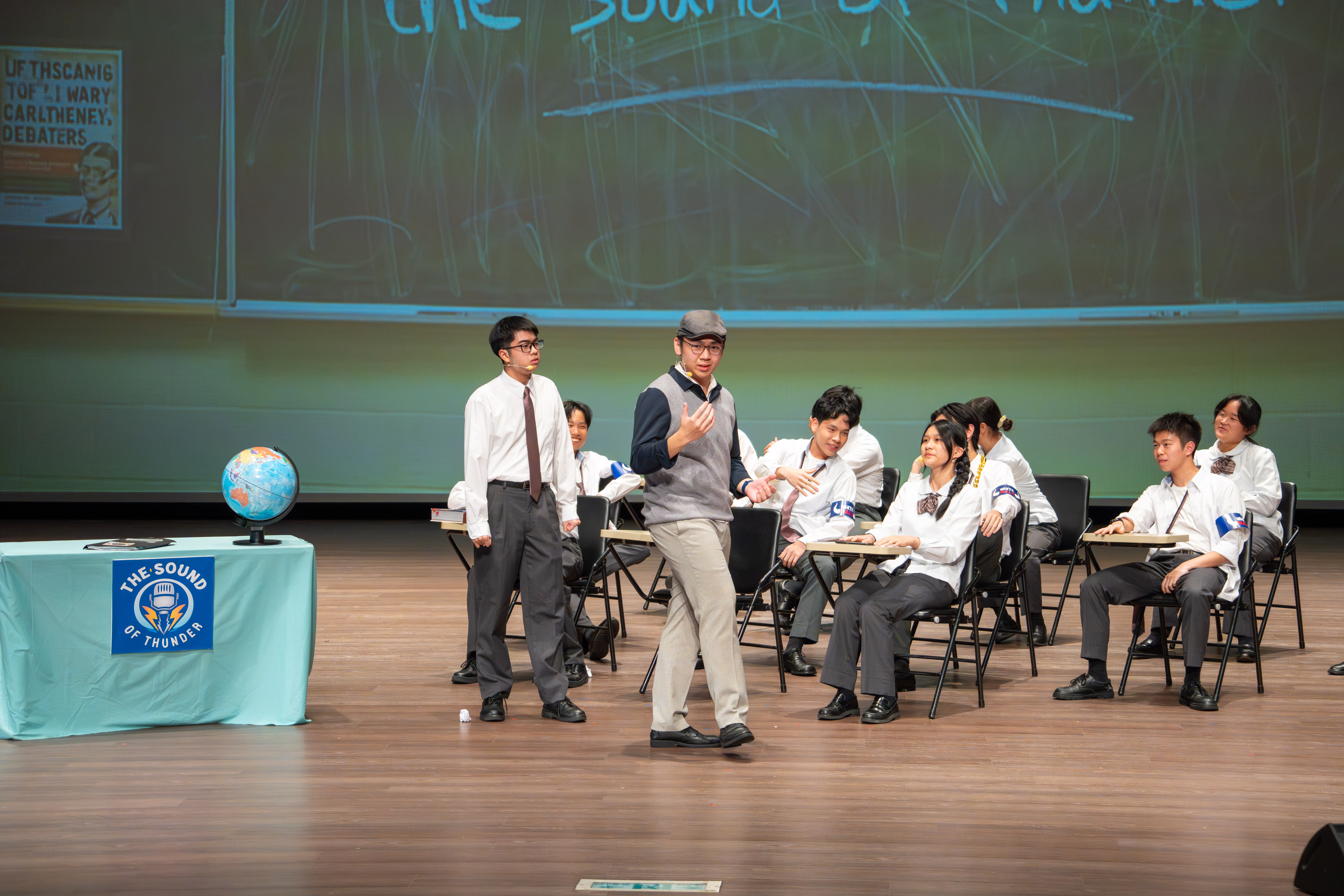 寒輔的壓軸亮點──高一英語話劇公演《高校西遊》(A Journey to the West) 於1月29日(星期四)晚間在藝術大廳閃亮登場!這齣長達40分鐘的原創英文舞台劇以經典名著《西遊記》為創作靈感,描述一位華裔青年赴美留學的尋夢過程,劇中巧妙融合了校園霸凌、種族偏見、移民困境與真理追求等生命議題,透過不同角色人物之間的精采對話,傳遞出善良與正直的普世價值。不論是台上的演員或各組幕後工作人員,都在這場高一年段盛事中經歷了「from Me to We」的成年禮,慢慢懂得放下自我,配合團體,以大局為重。值得一題的是,這次公演劇碼《高校西遊》將於四月代表南投縣參加「114學年度全國學生創意戲劇比賽」全國決賽,期待這齣兼具深度與張力的英語戲劇能在群雄中脫穎而出,拔得頭籌,為校爭光!