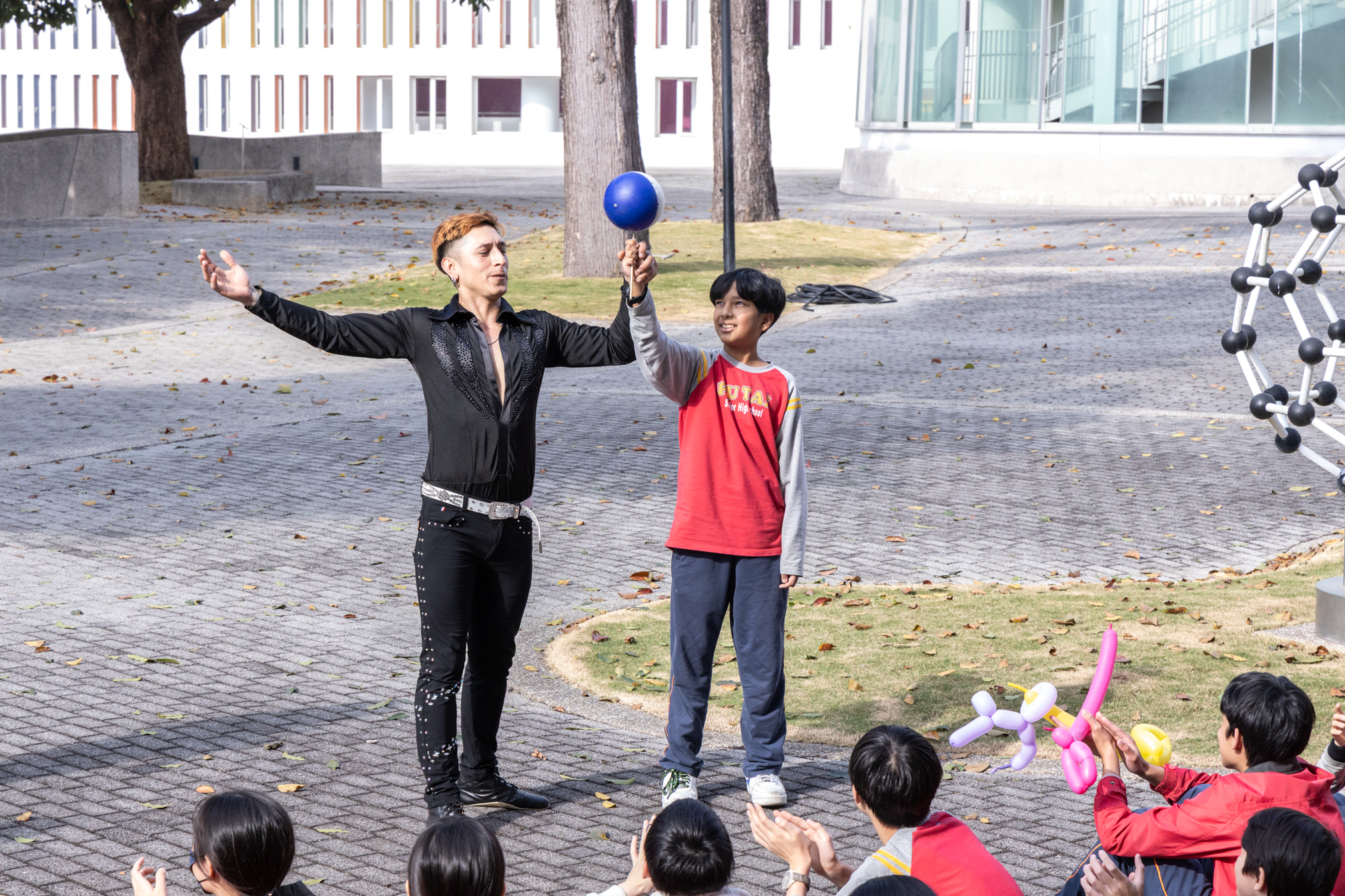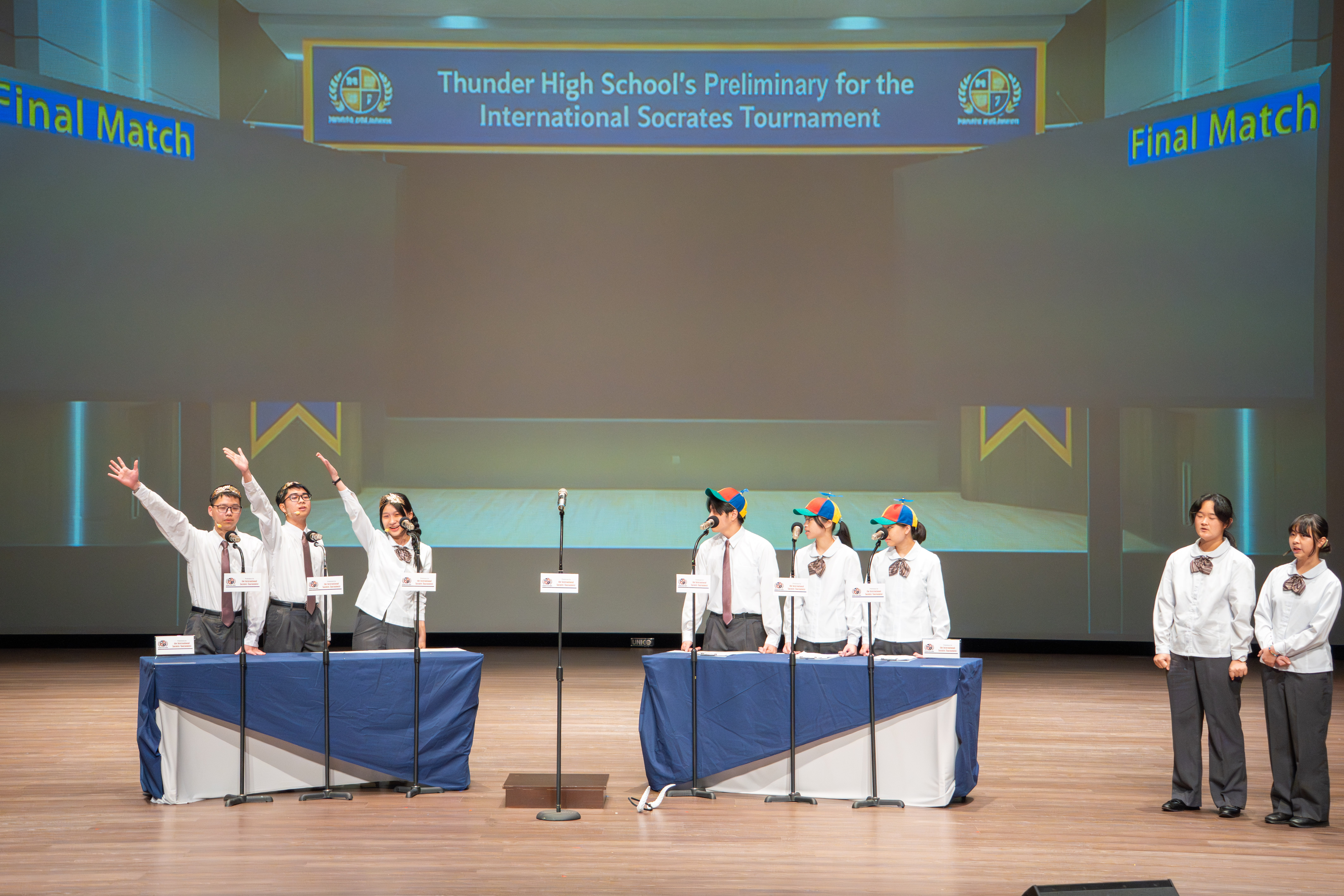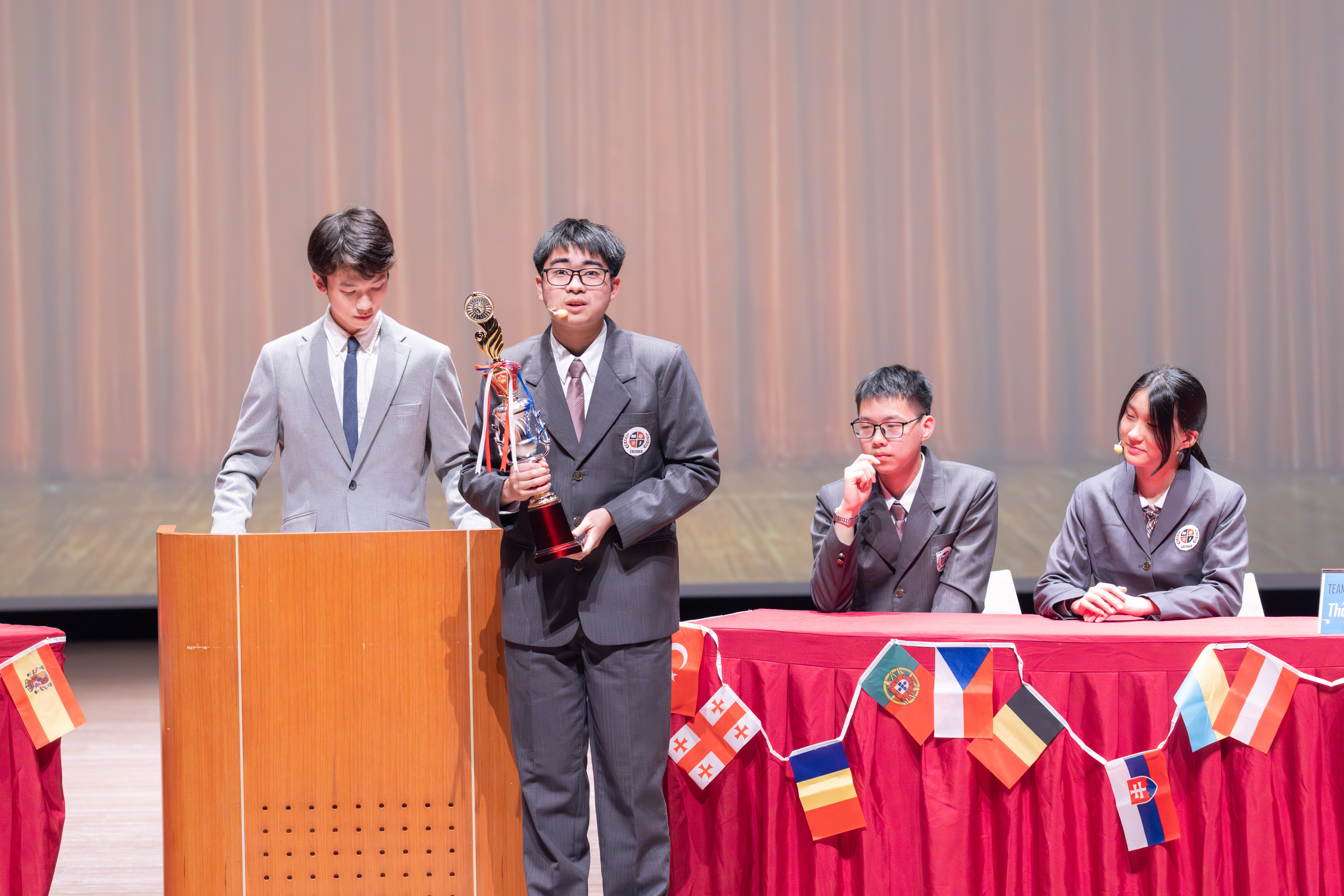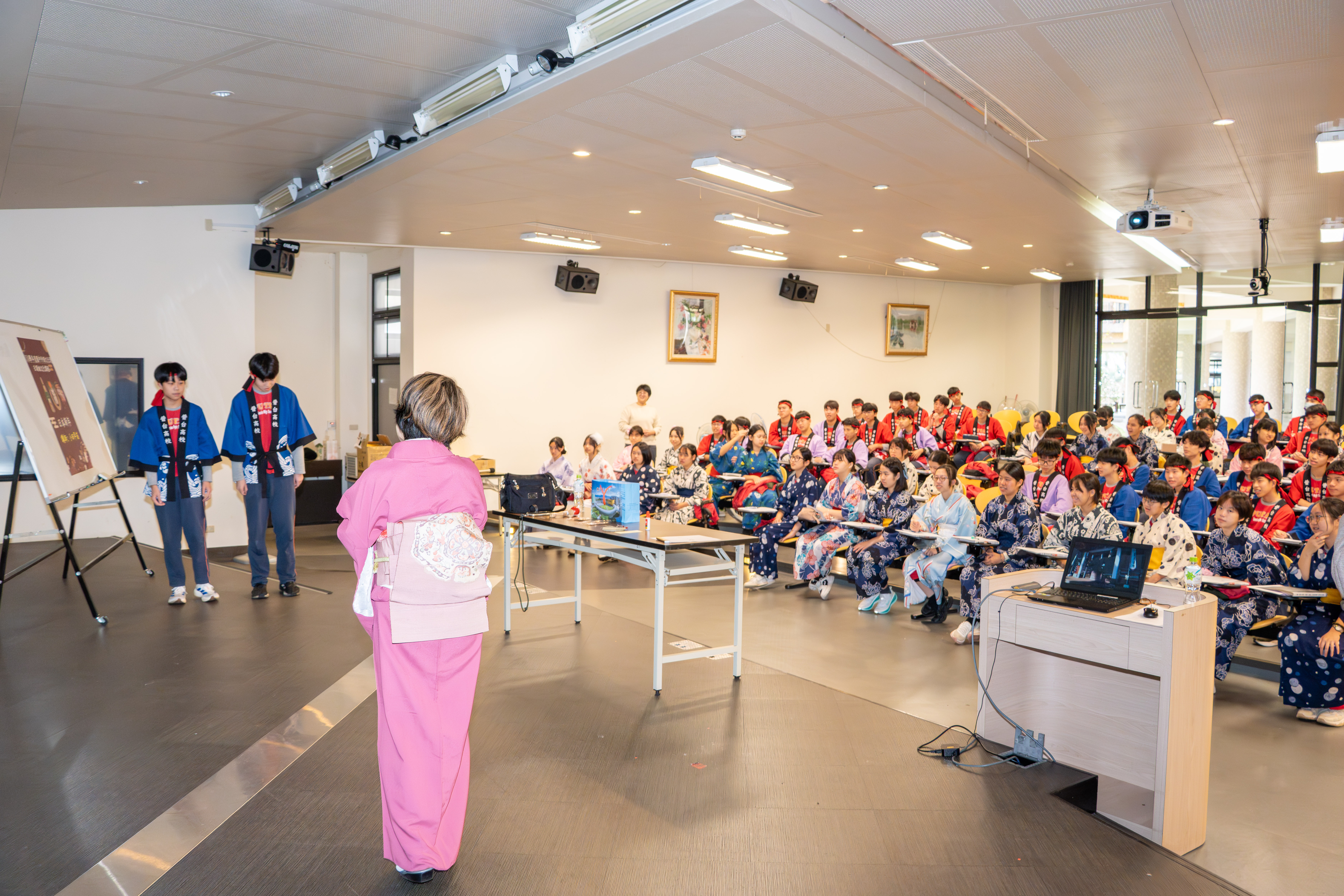 寒輔的壓軸亮點──高一英語話劇公演《高校西遊》(A Journey to the West) 於1月29日(星期四)晚間在藝術大廳閃亮登場!這齣長達40分鐘的原創英文舞台劇以經典名著《西遊記》為創作靈感,描述一位華裔青年赴美留學的尋夢過程,劇中巧妙融合了校園霸凌、種族偏見、移民困境與真理追求等生命議題,透過不同角色人物之間的精采對話,傳遞出善良與正直的普世價值。不論是台上的演員或各組幕後工作人員,都在這場高一年段盛事中經歷了「from Me to We」的成年禮,慢慢懂得放下自我,配合團體,以大局為重。值得一題的是,這次公演劇碼《高校西遊》將於四月代表南投縣參加「114學年度全國學生創意戲劇比賽」全國決賽,期待這齣兼具深度與張力的英語戲劇能在群雄中脫穎而出,拔得頭籌,為校爭光!
