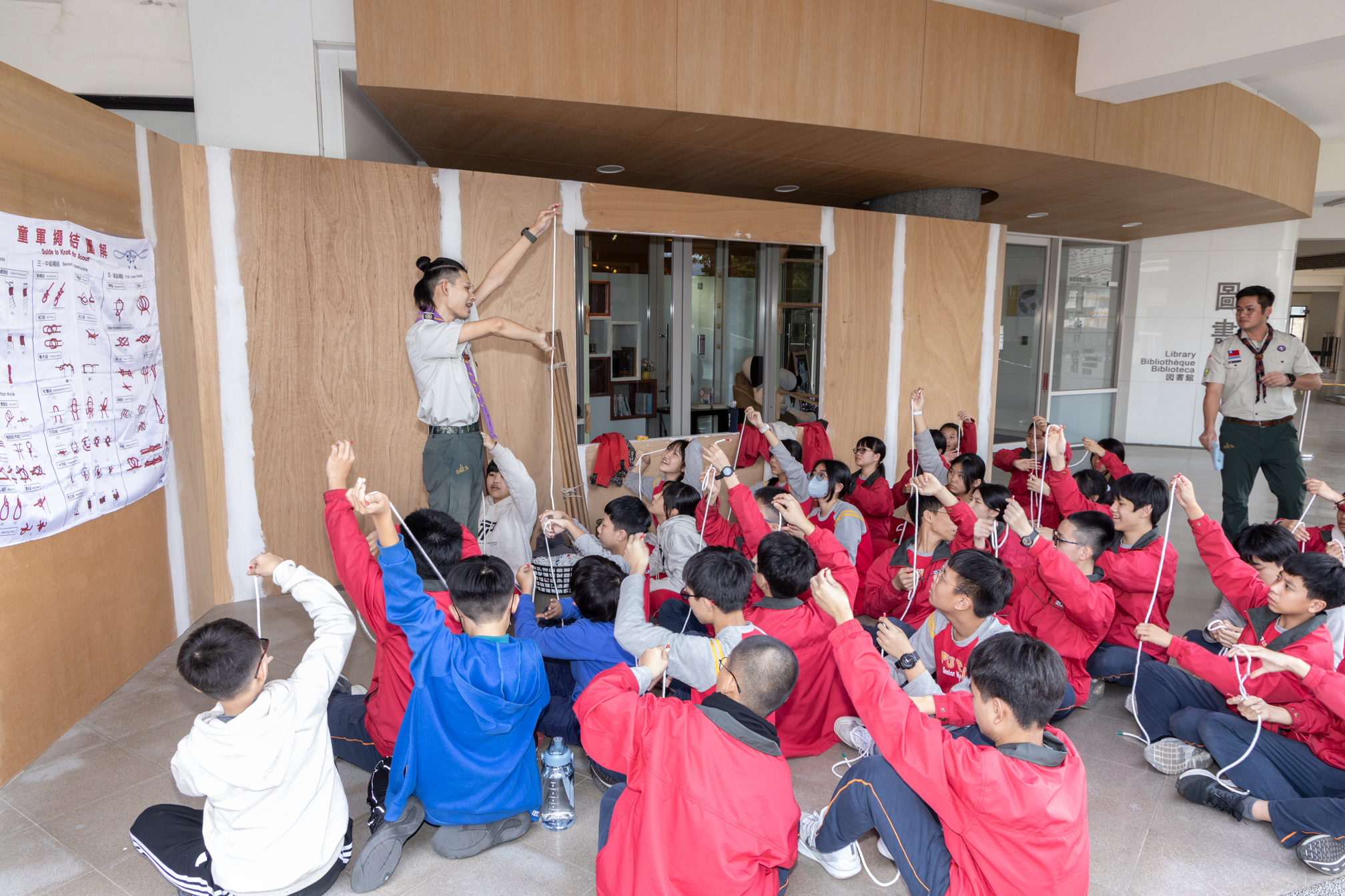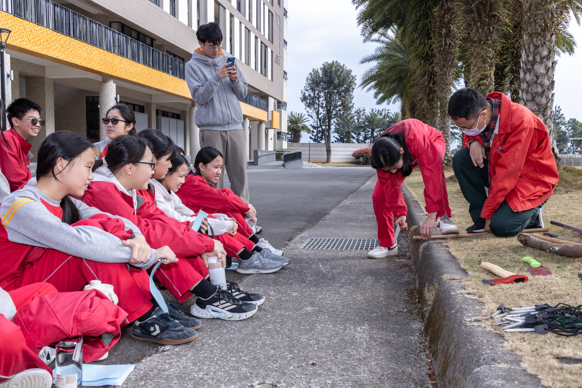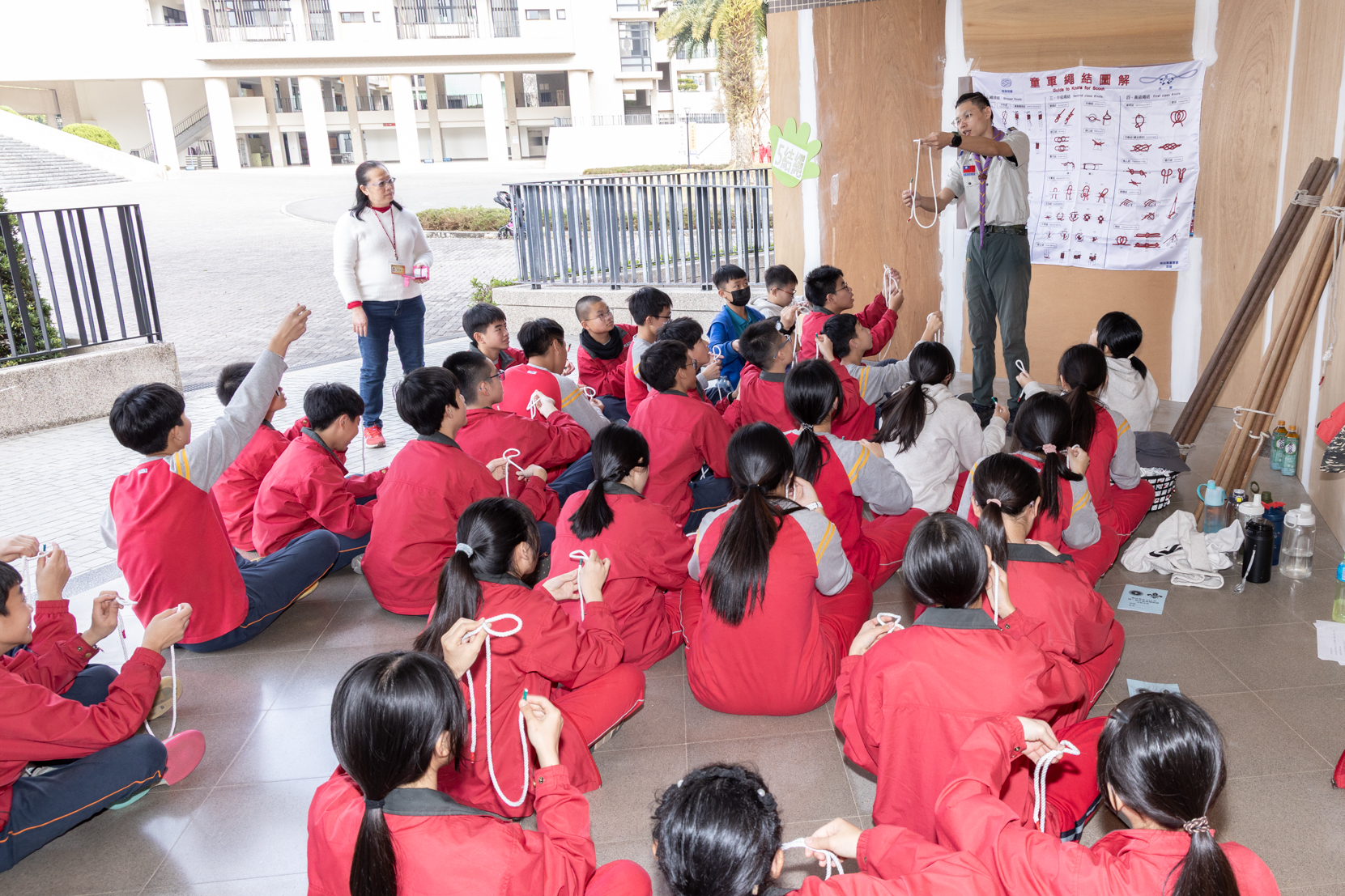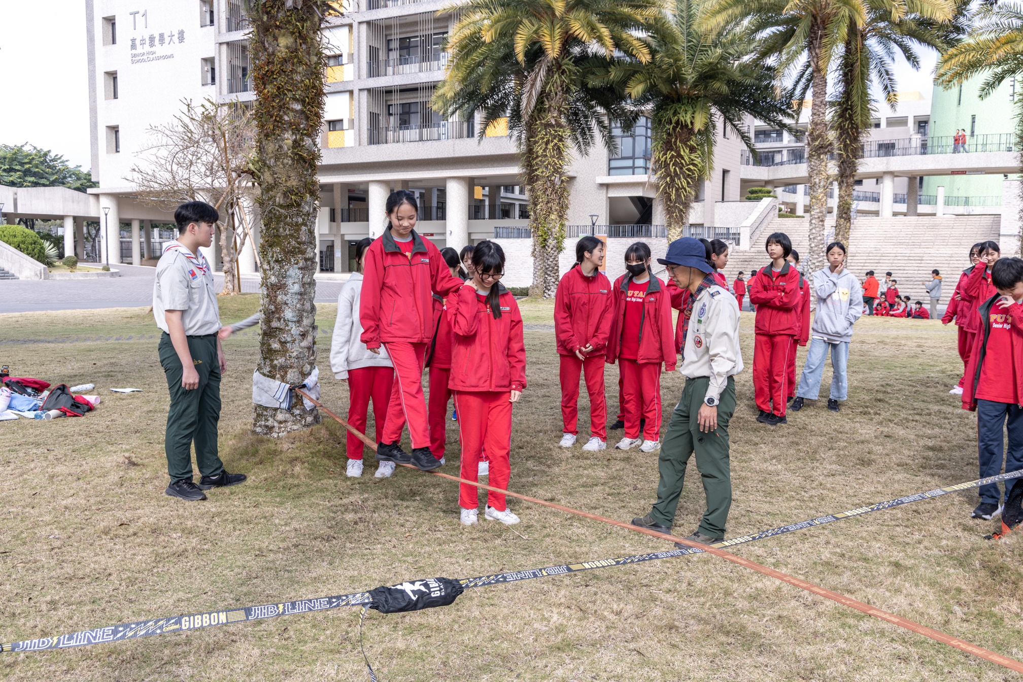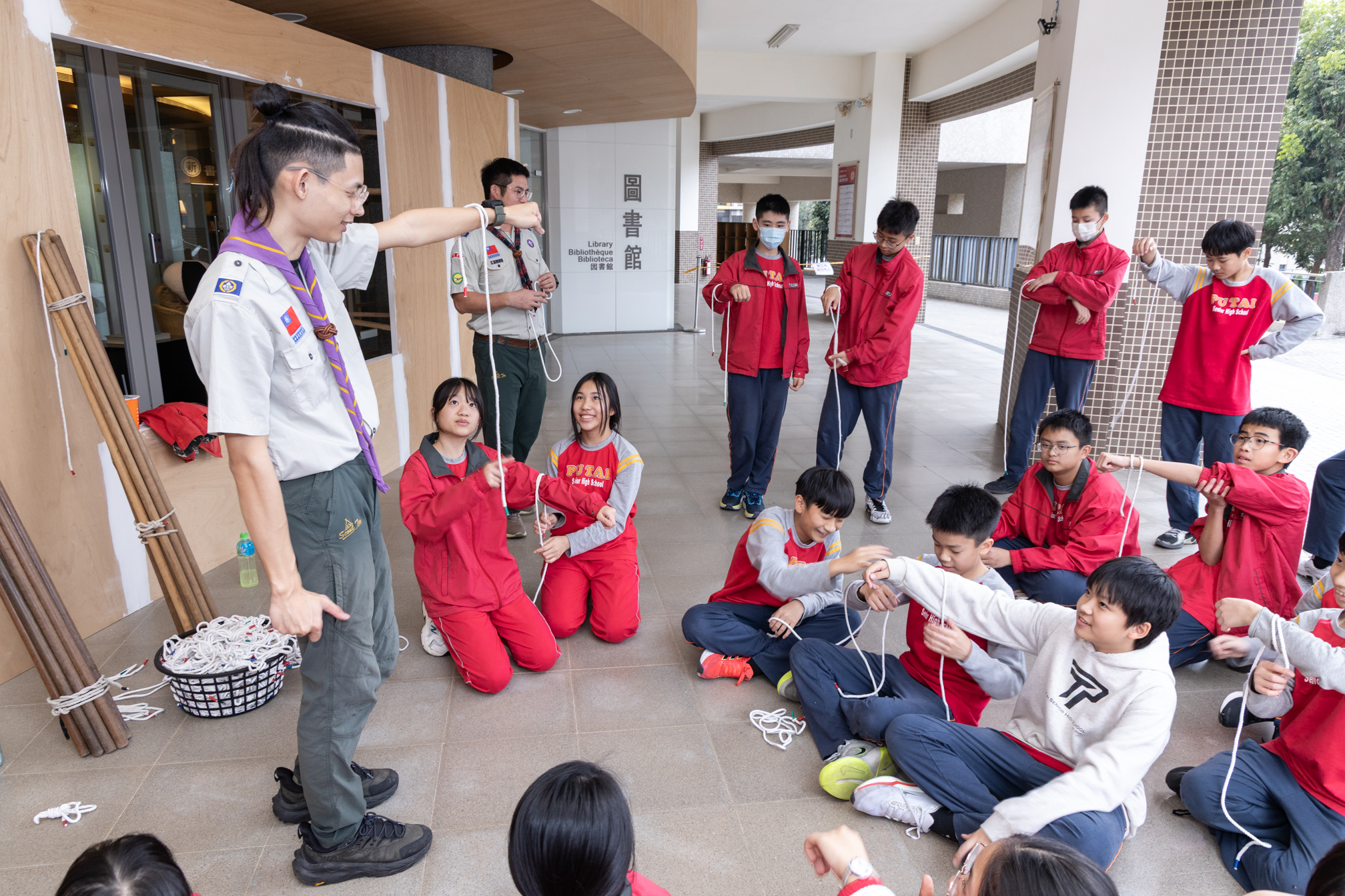 國一的寒輔活動既有趣又有挑戰性:「英詩歌唱比賽」是國一學子第一次大型舞台體驗,各組上台朗讀指定詩篇〈A Way of Life〉,演唱扣合此次活動主題「Integrity」的自選英文歌曲;從生澀膽怯到逐漸突破對舞台的恐懼,台上的小國一呈現巨大的進步,讓師長們備感驚喜。此外,還有一整個下午的小小「童軍營」,孩子們除了學習繩結、生火、急救包紮、指北針判讀等維生技能,也從活動中培養探險精神與團隊協作力;「校園植物巡禮」則帶領學子認識普台多元植物樣態,增進對大自然的觀察力與環境保護意識。