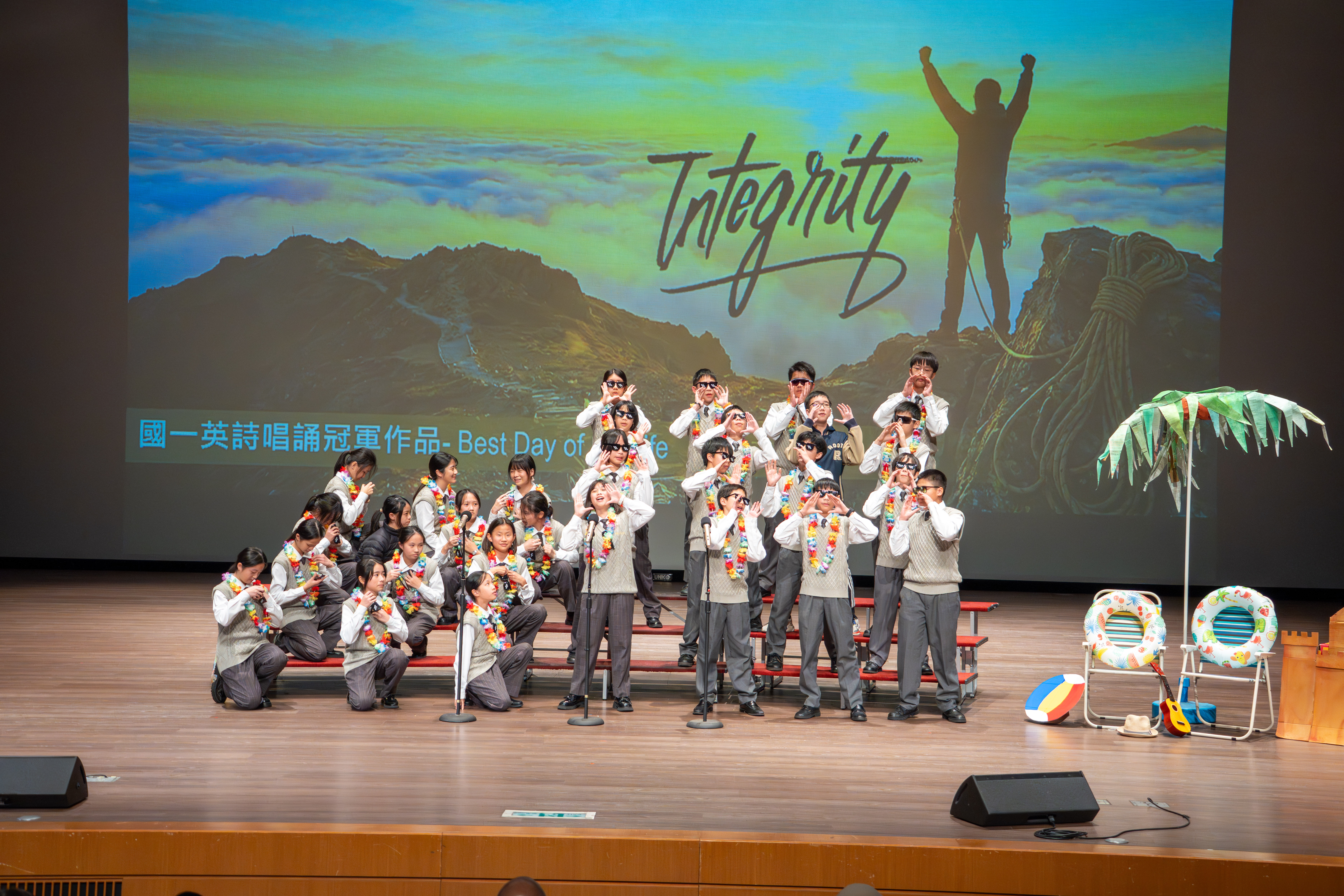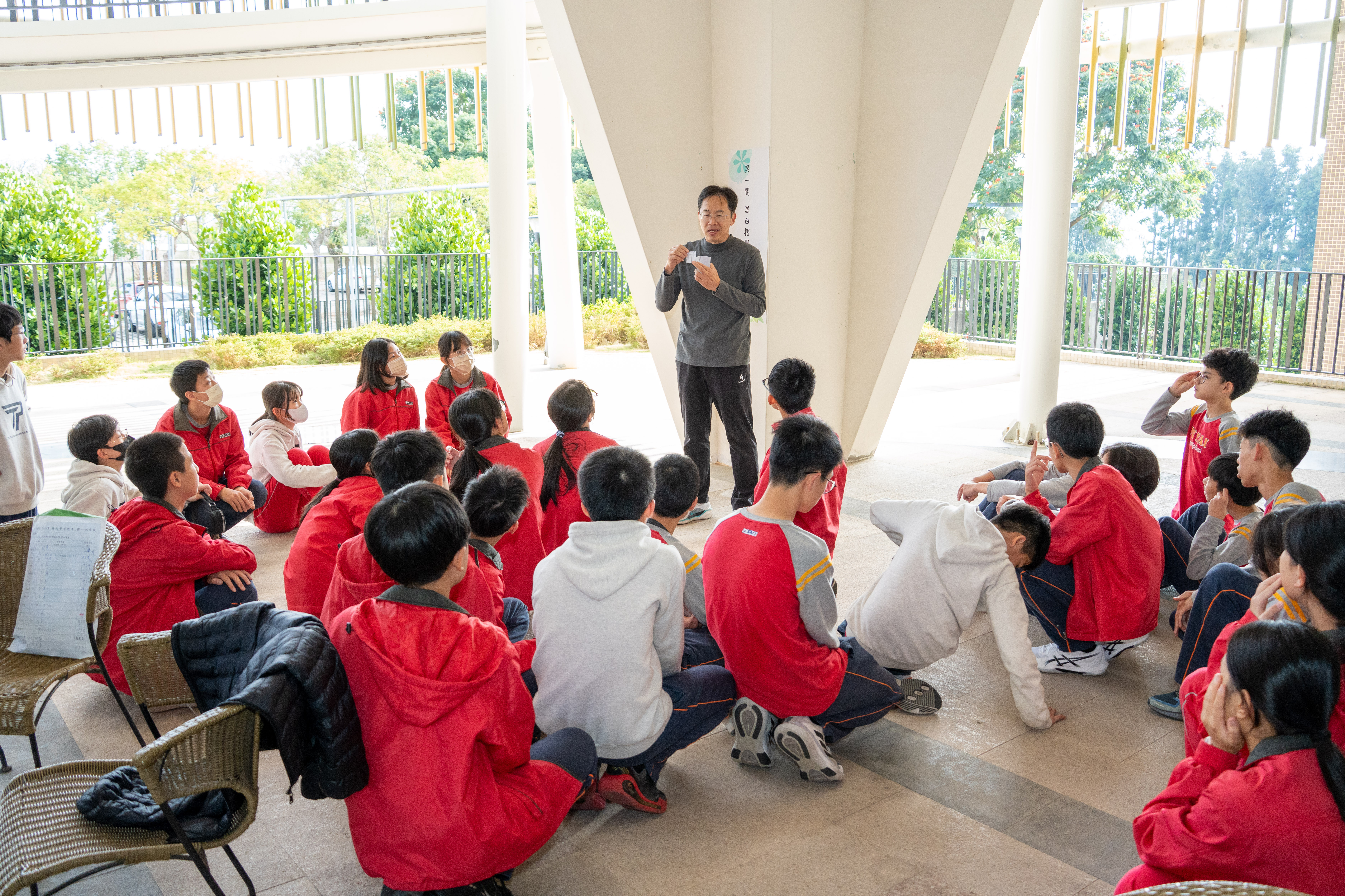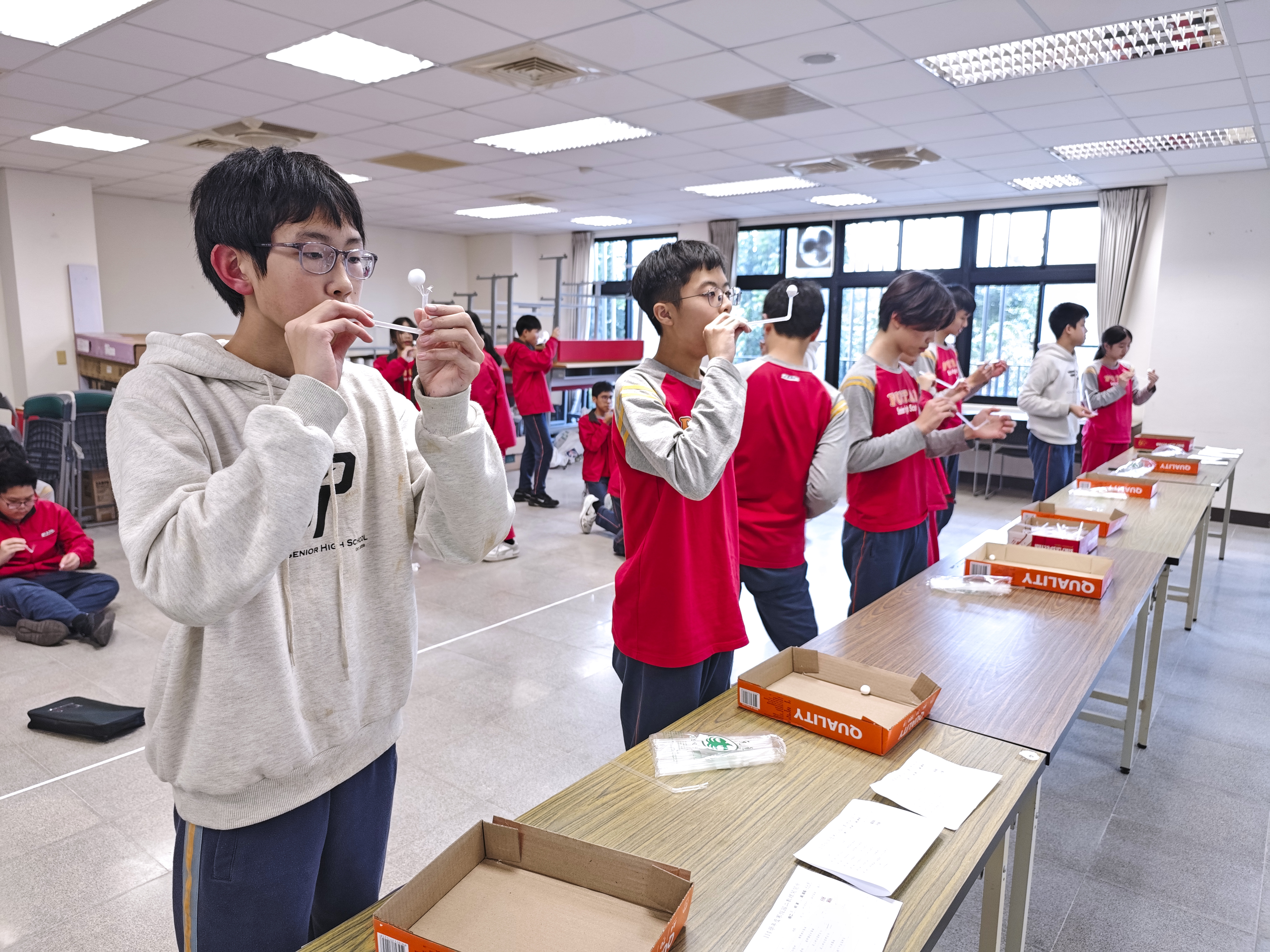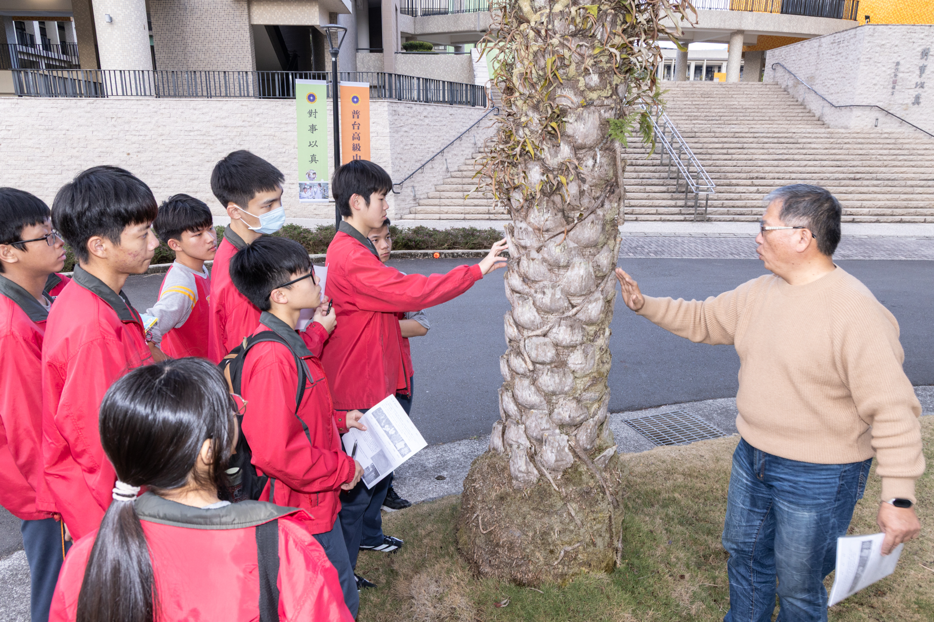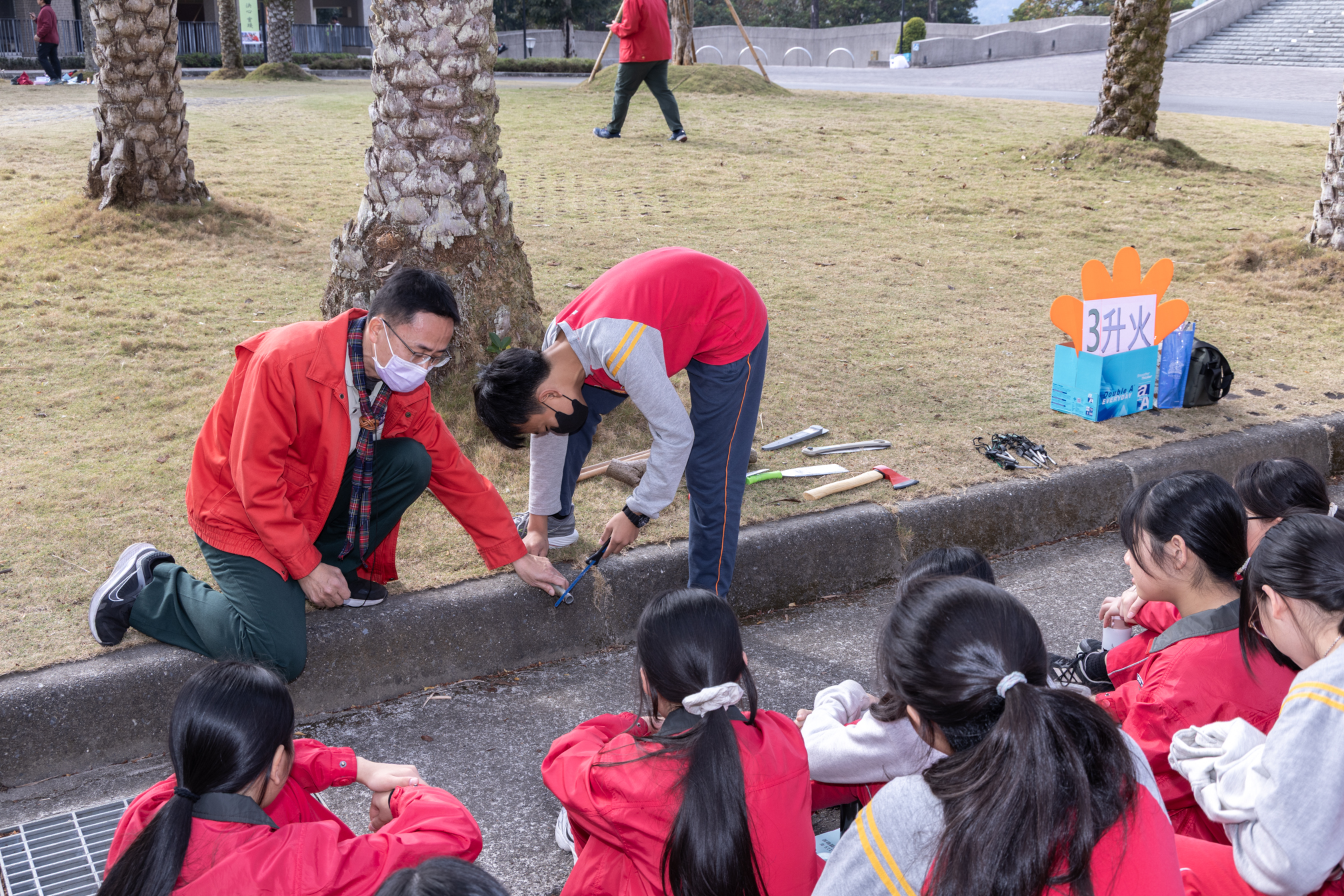國一的寒輔活動既有趣又有挑戰性:「英詩歌唱比賽」是國一學子第一次大型舞台體驗,各組上台朗讀指定詩篇〈A Way of Life〉,演唱扣合此次活動主題「Integrity」的自選英文歌曲;從生澀膽怯到逐漸突破對舞台的恐懼,台上的小國一呈現巨大的進步,讓師長們備感驚喜。此外,還有一整個下午的小小「童軍營」,孩子們除了學習繩結、生火、急救包紮、指北針判讀等維生技能,也從活動中培養探險精神與團隊協作力;「校園植物巡禮」則帶領學子認識普台多元植物樣態,增進對大自然的觀察力與環境保護意識。