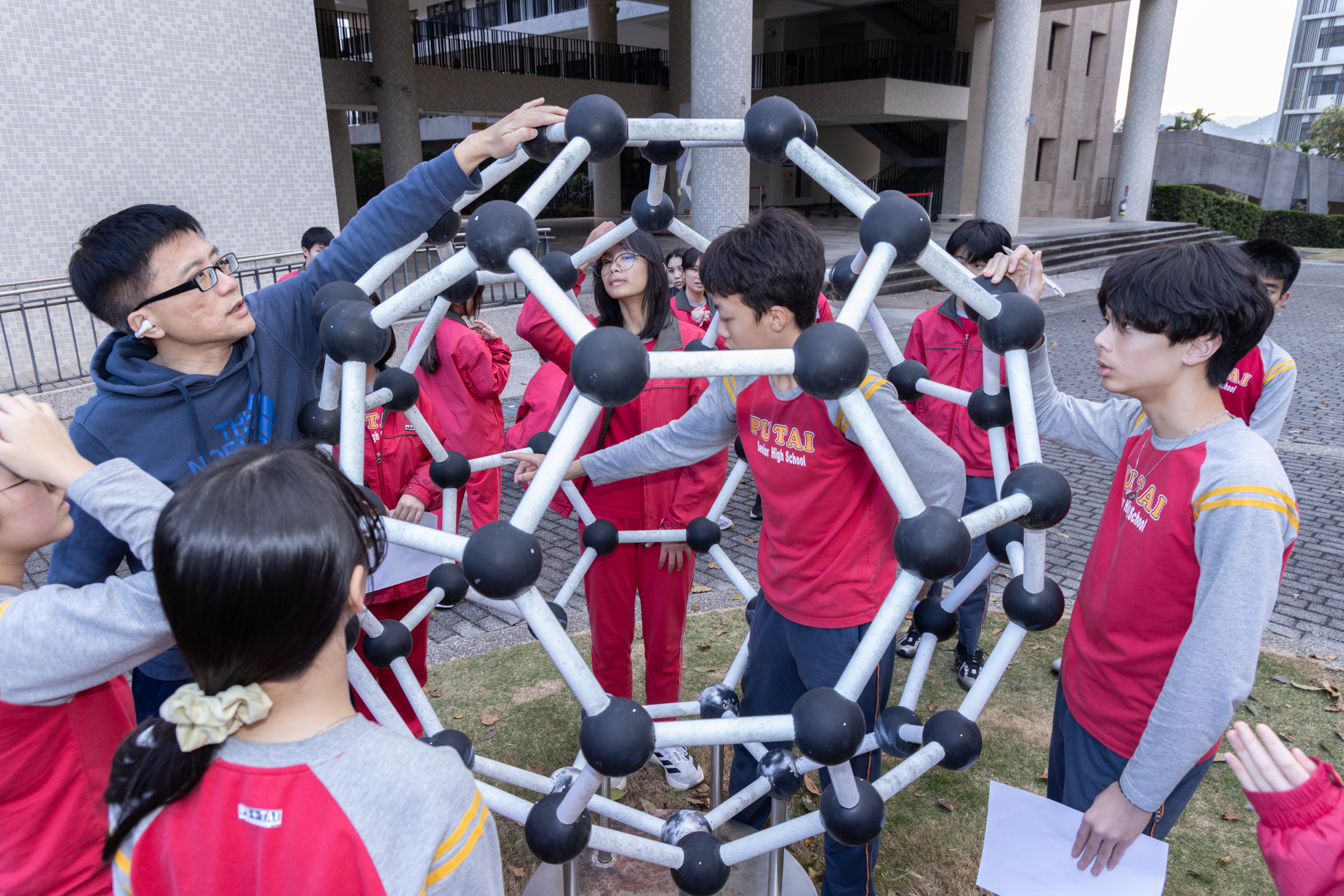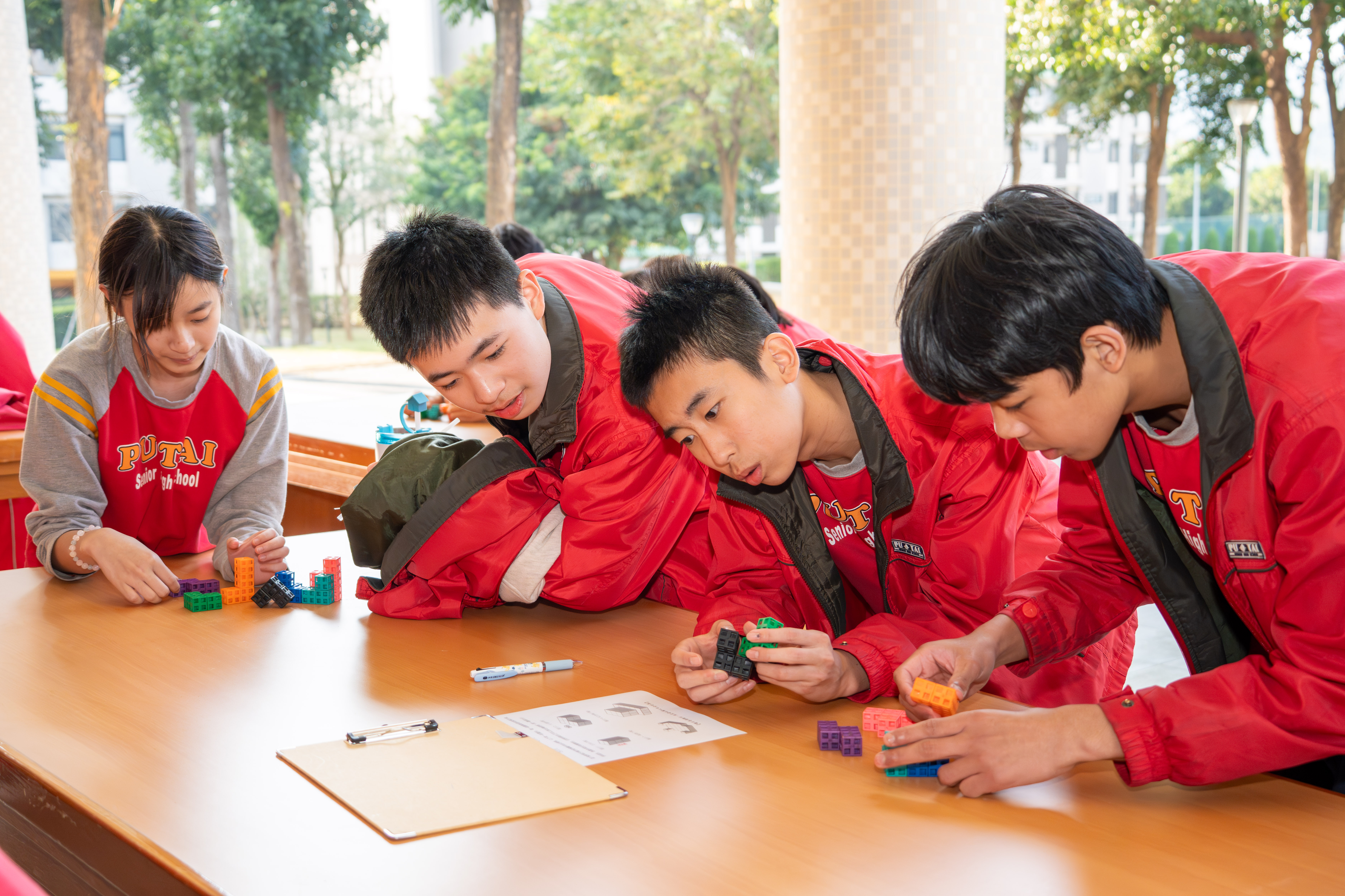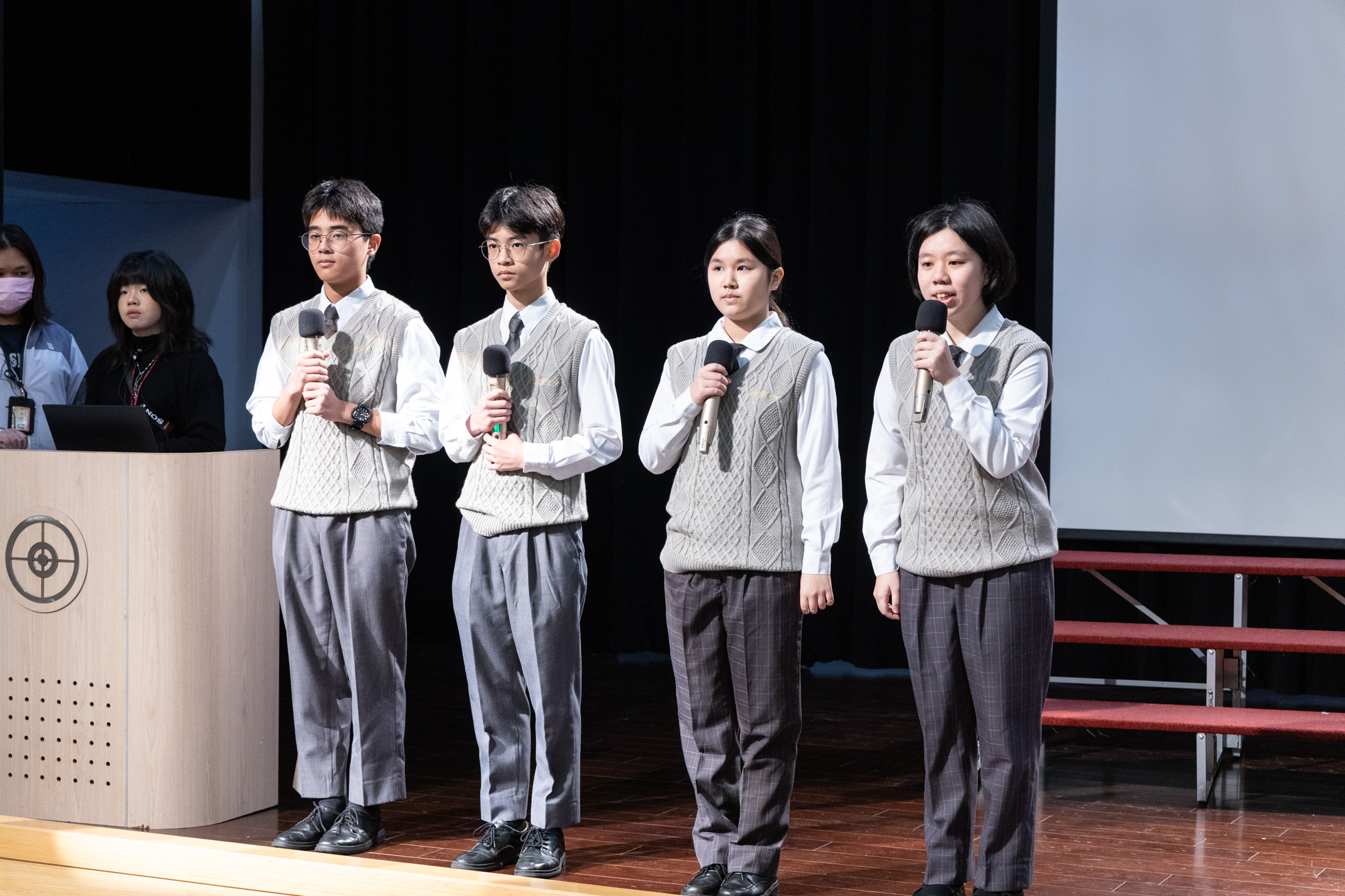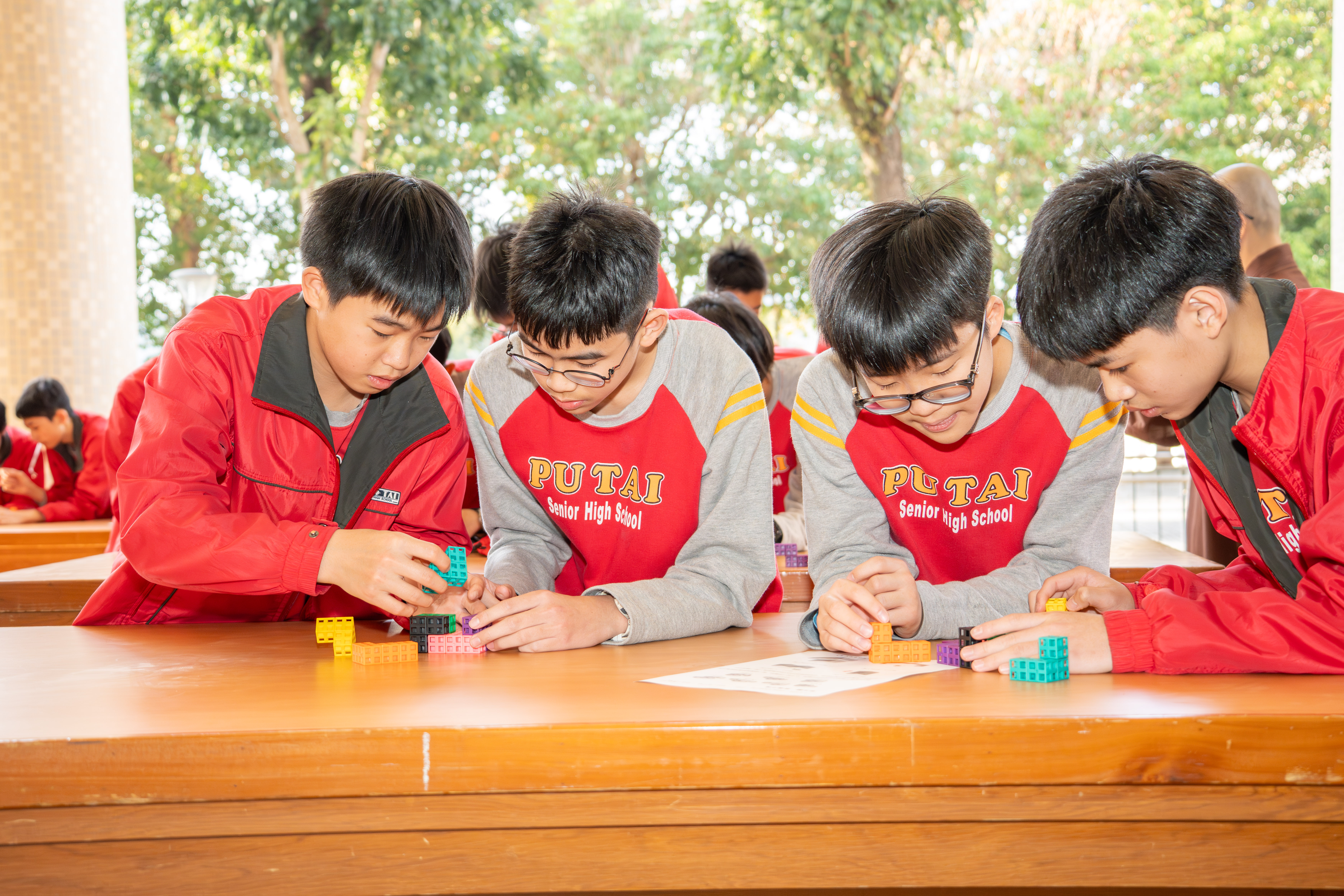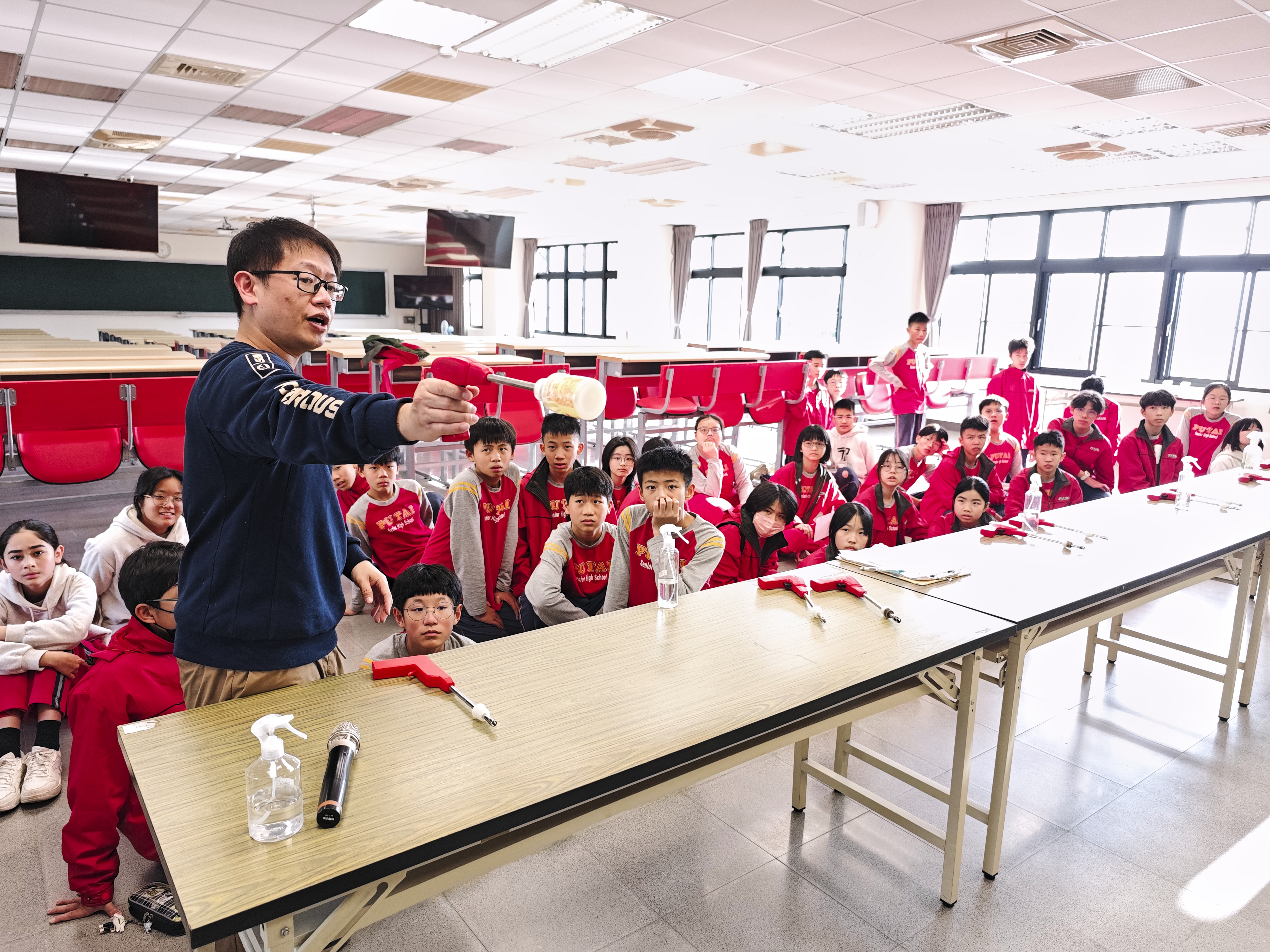 國一的寒輔活動既有趣又有挑戰性:「英詩歌唱比賽」是國一學子第一次大型舞台體驗,各組上台朗讀指定詩篇〈A Way of Life〉,演唱扣合此次活動主題「Integrity」的自選英文歌曲;從生澀膽怯到逐漸突破對舞台的恐懼,台上的小國一呈現巨大的進步,讓師長們備感驚喜。此外,還有一整個下午的小小「童軍營」,孩子們除了學習繩結、生火、急救包紮、指北針判讀等維生技能,也從活動中培養探險精神與團隊協作力;「校園植物巡禮」則帶領學子認識普台多元植物樣態,增進對大自然的觀察力與環境保護意識。